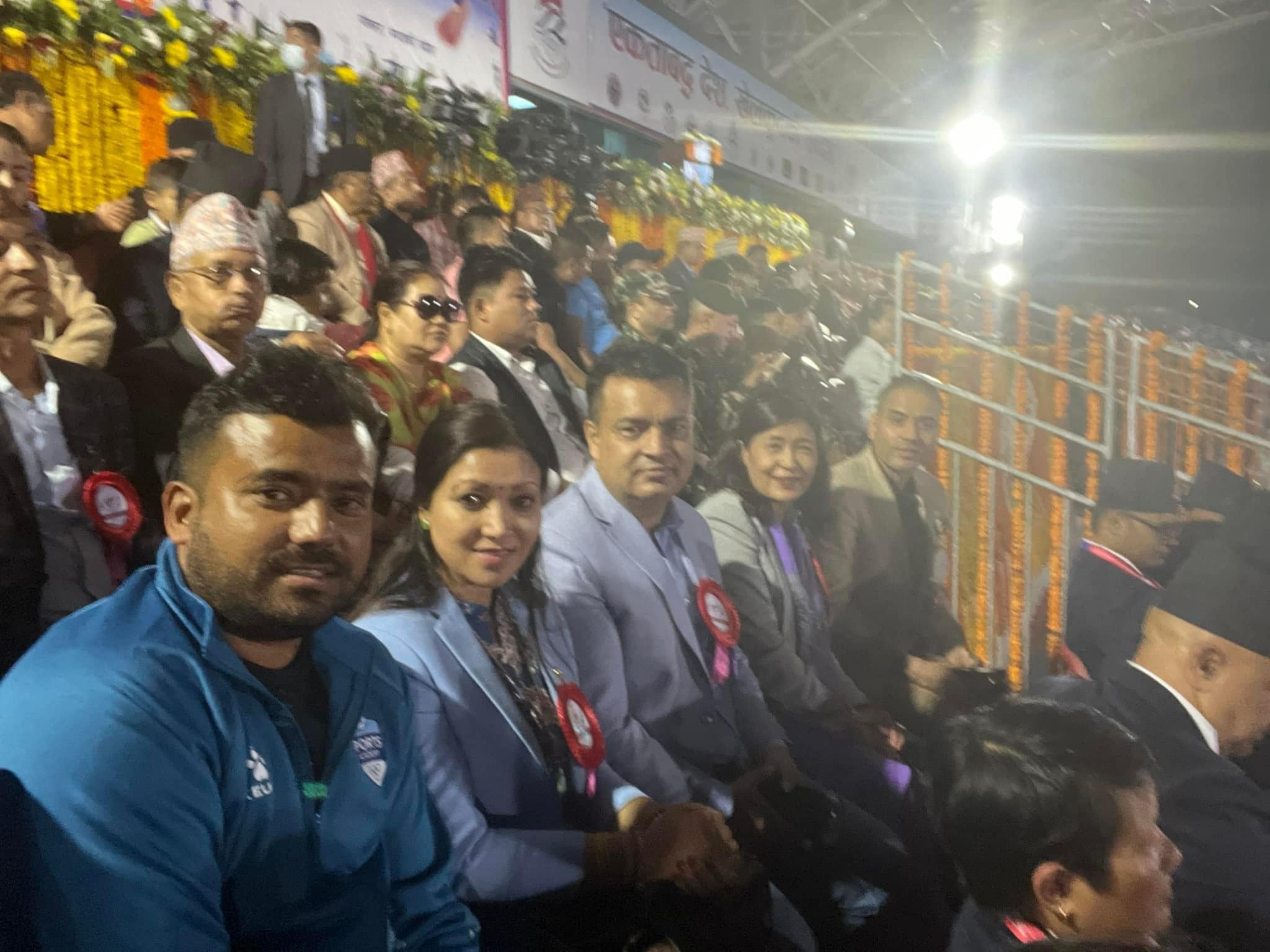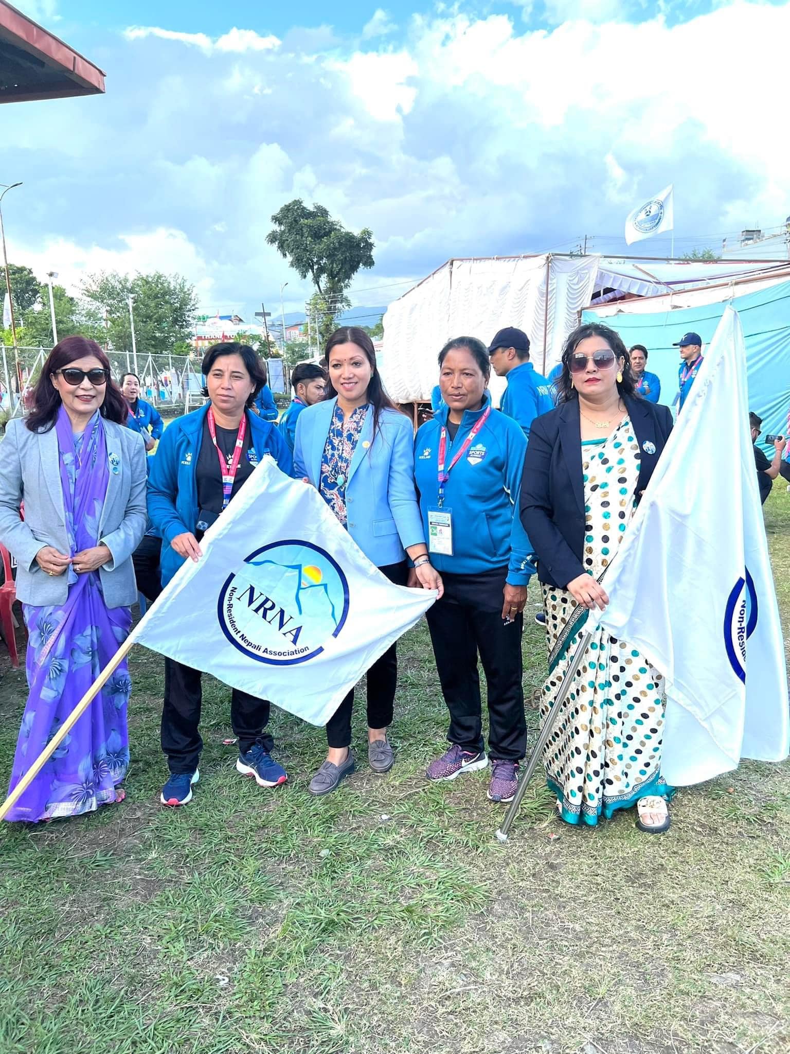 एनआरएनए खेलाडीहरुलाई हौसला दिन संघका केन्द्रीय अध्यक्षद्धय रविना थापा र डा. बद्री केसी लगायत संघका पदाधिकारीहरु खेल मैदानमा उत्रिएका थिए ।