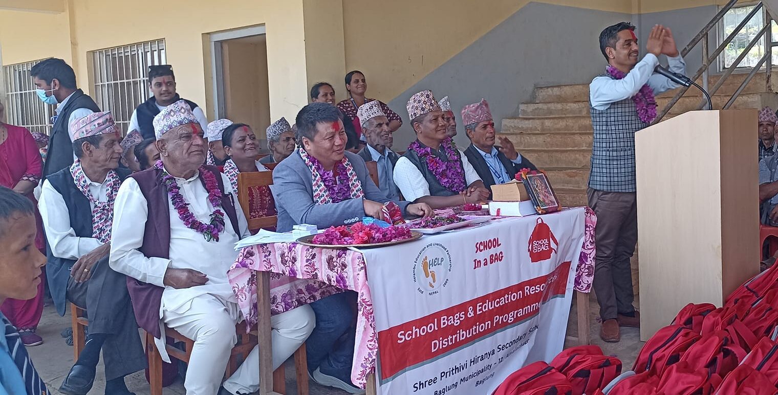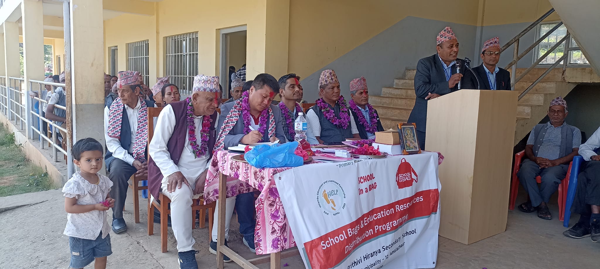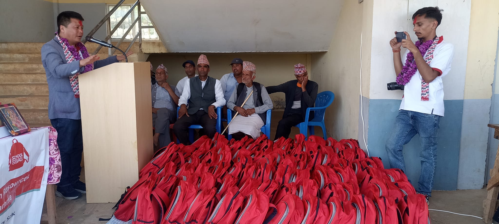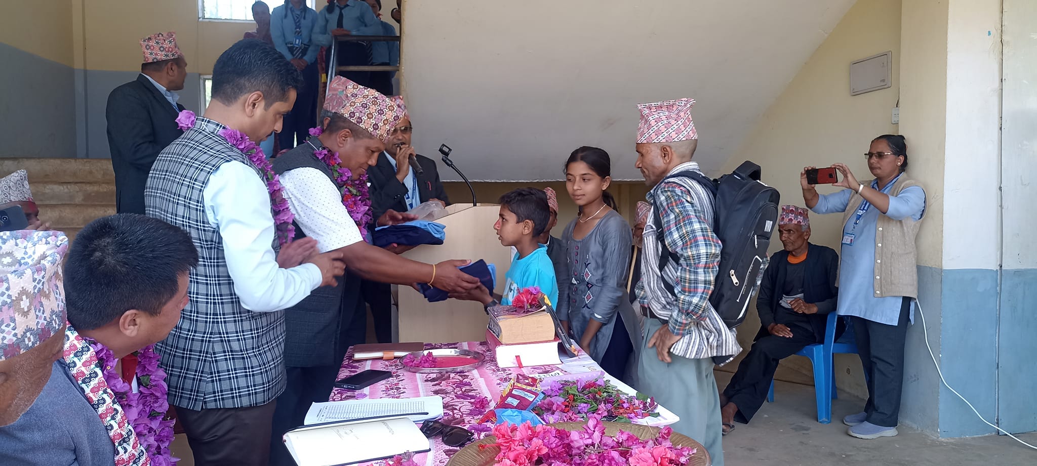 कक्षा १ देखि ८ सम्मका विद्यार्थीहरुलाई स्कुल झोला, कापी, पेन्सिल,ज्यामिती बक्स, स्केल, साबुन, टुथपेष्ट, टुथब्रस,कलर पेन्सिल, नङकट, काईयो लगाएत अन्य उनीहरुलाई चाहिने सामग्रीहरुको साथै विभिन्न बिषयसँग सम्बन्धित पुस्तकहरु समेत वितरण गरियो ।
