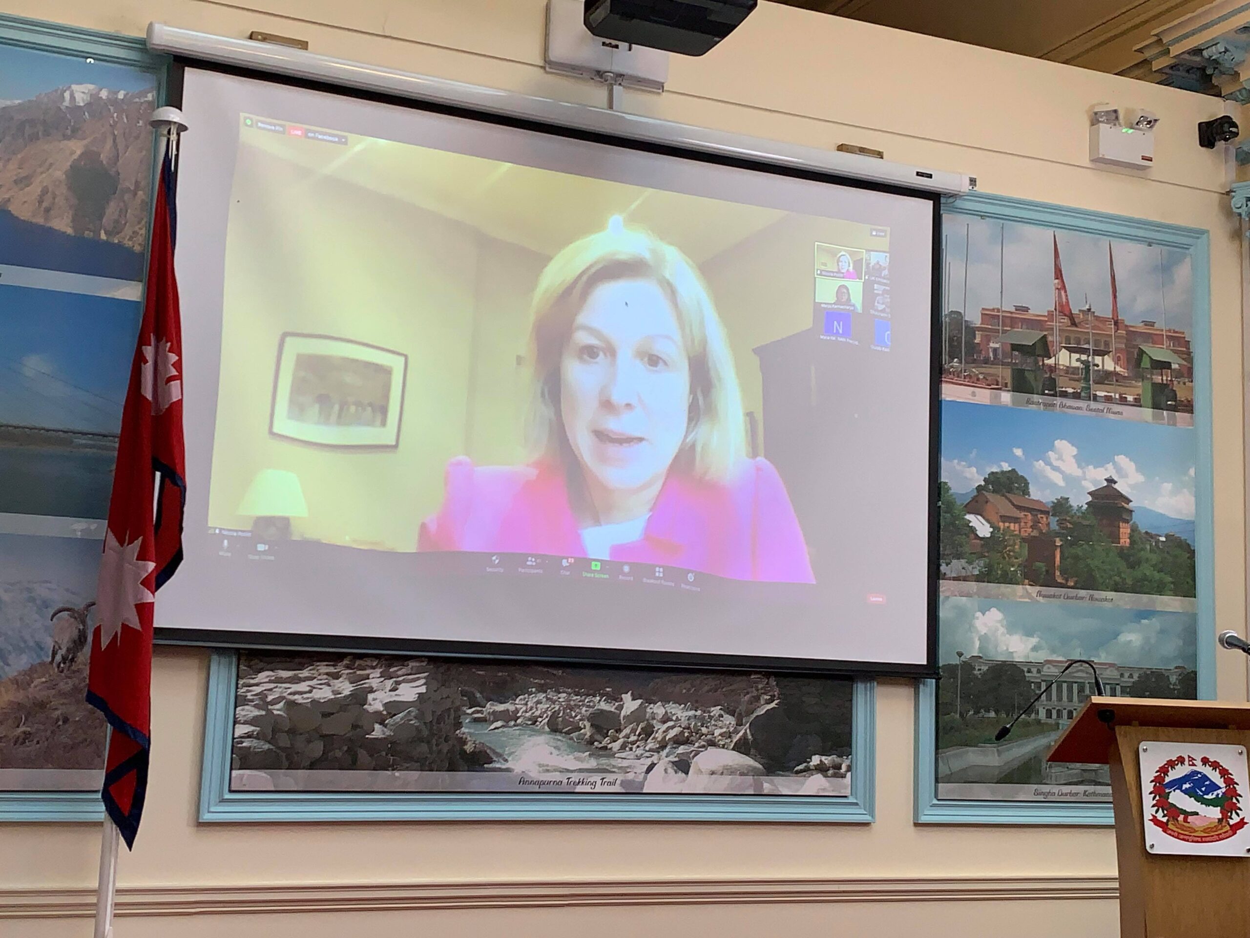उनले सबै जनतालाई खोप पुराउन तथा कोभिड १९ संग जुध्न नेपाल सरकारले गरिरहेको काममा सघाउन अन्तर्राष्ट्रिय समुदाय तयार रहेको पनि बताइन्।