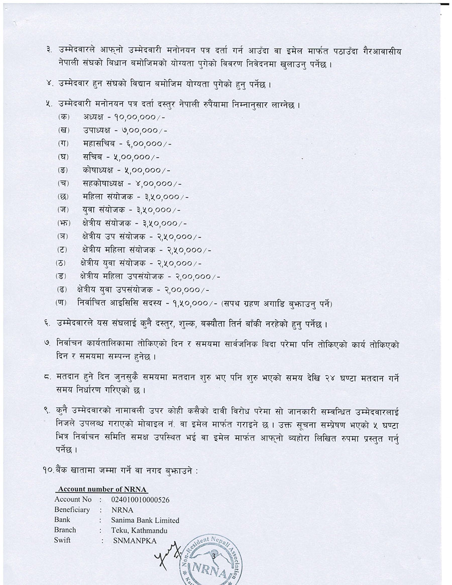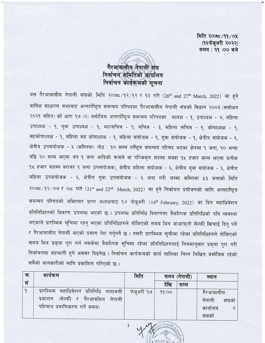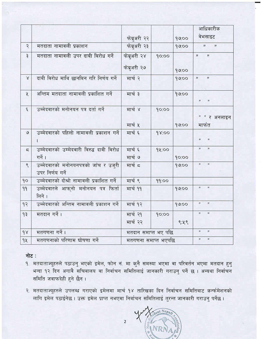 यस्तो छ एनआरएनए निर्वाचन कार्यतालिका