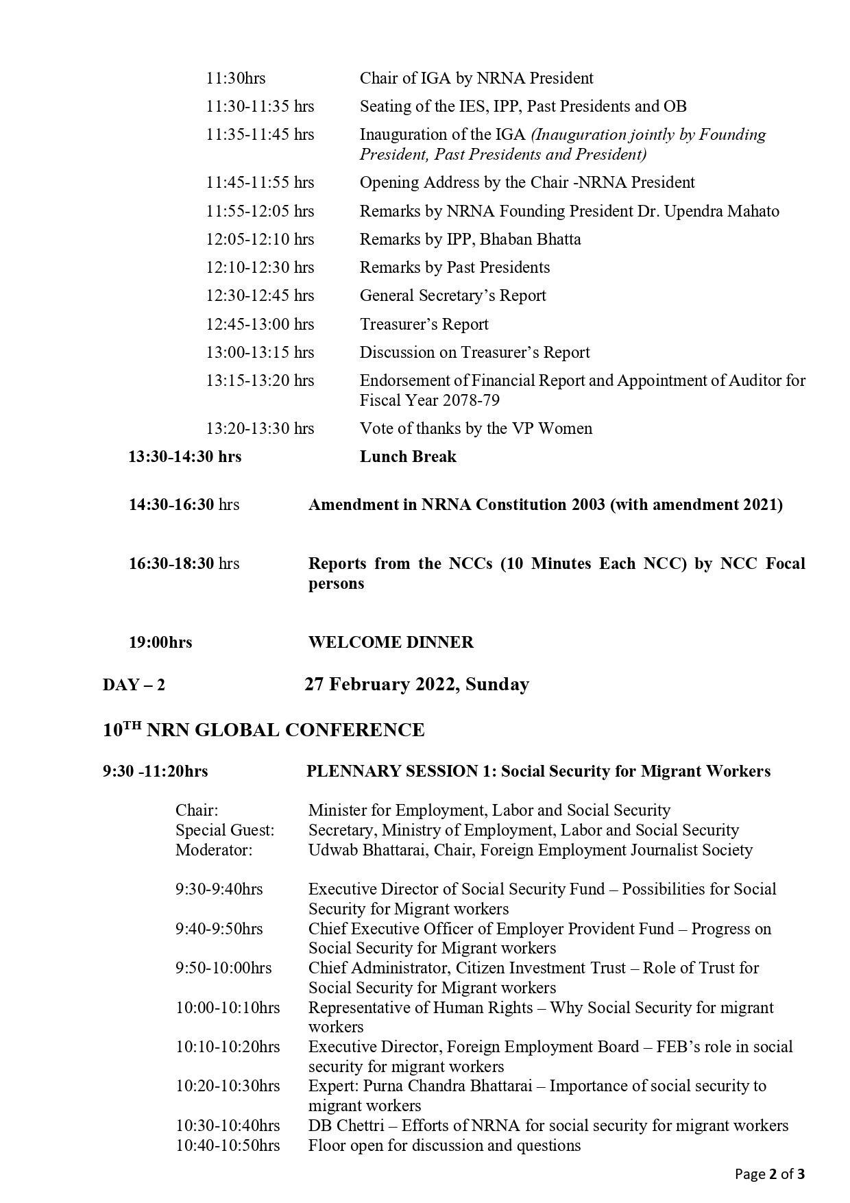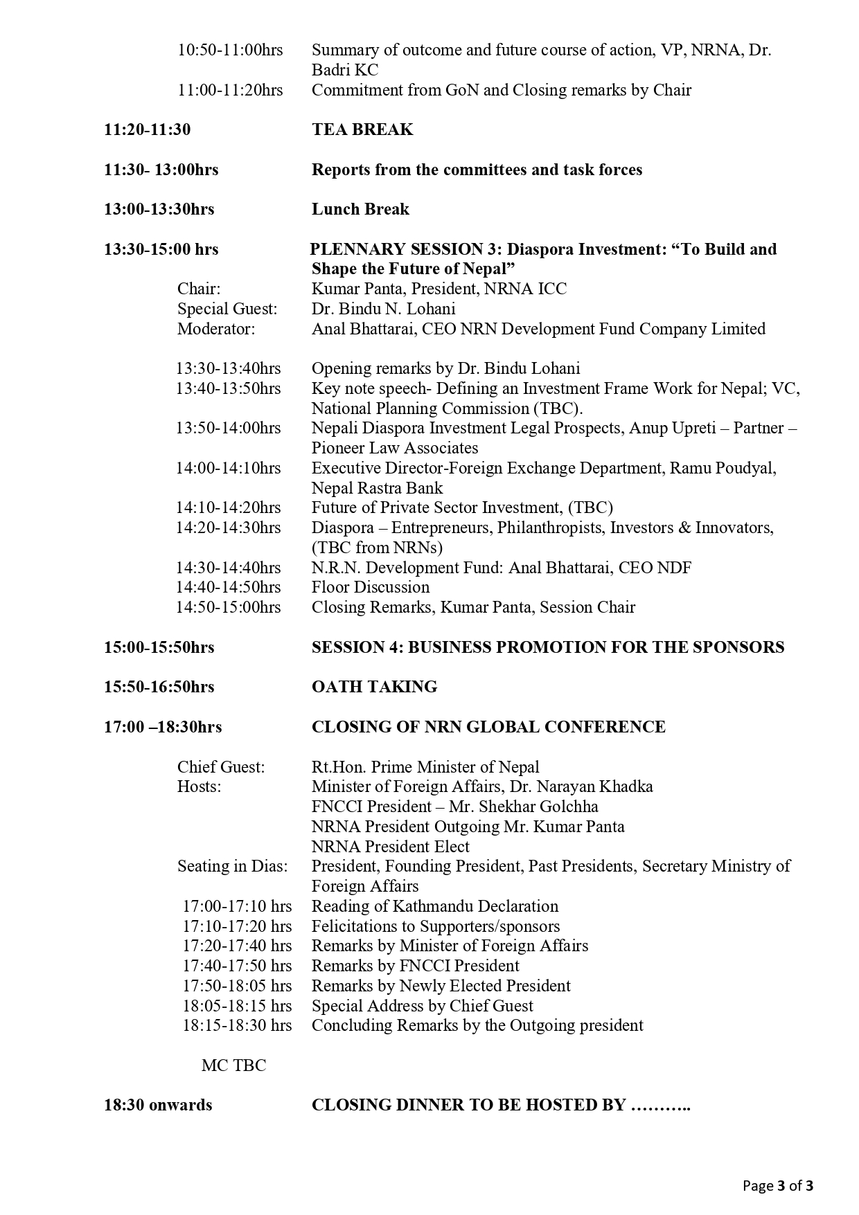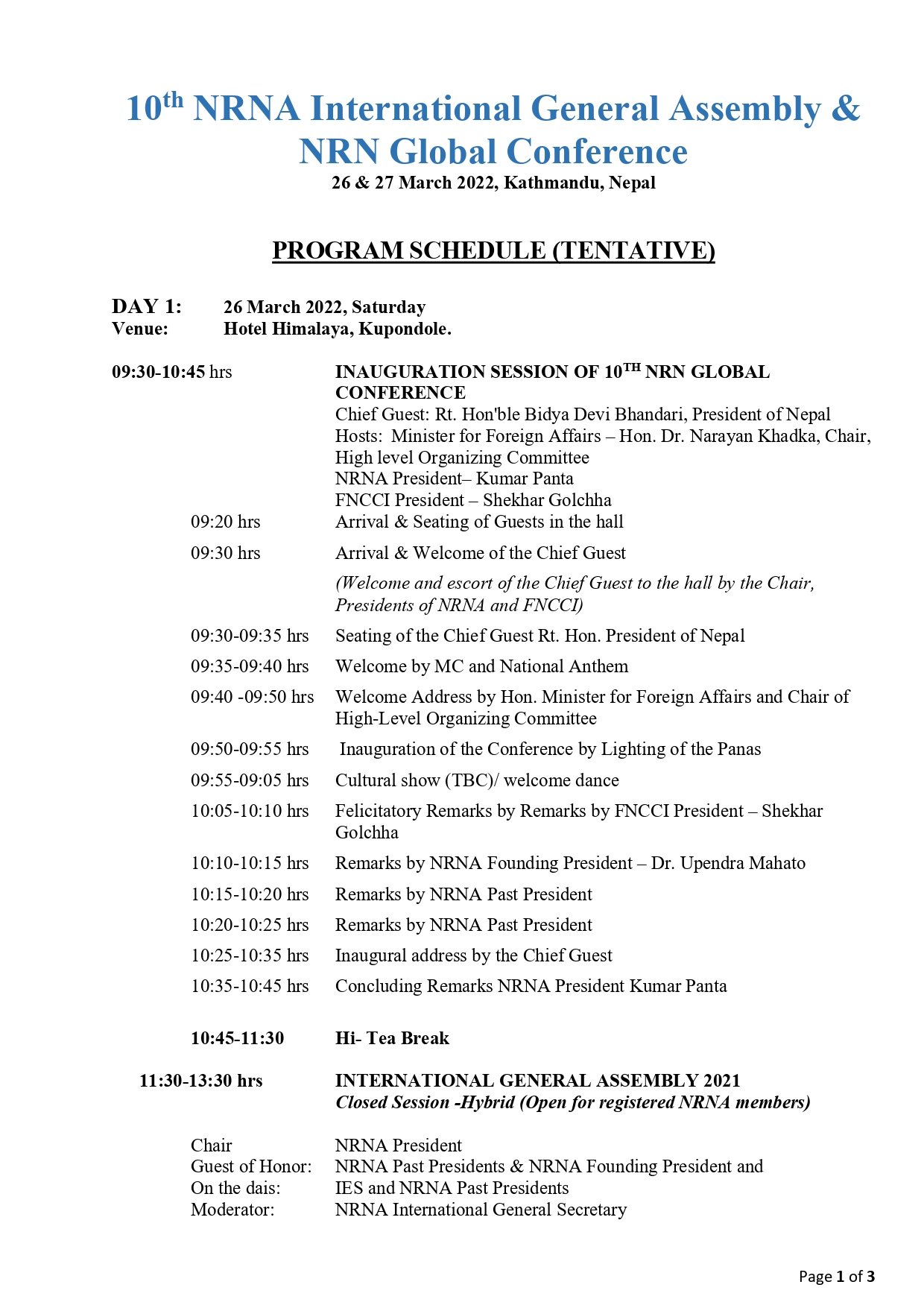 एनआरएनए सम्मेलन : राष्ट्रपति र प्रधानमन्त्री सहभागी हुने (यस्तो छ कार्यक्रम)