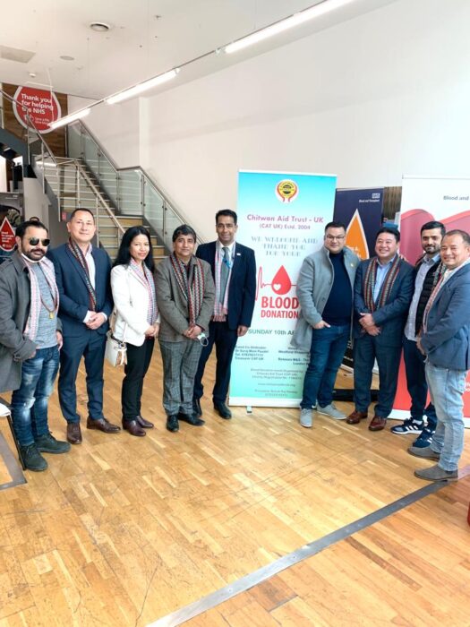 लन्डन । चितवन एड ट्रष्ट (क्याट) यूकेको आयोजनामा रक्तदान कार्यक्रम सम्पन्न भएको छ । गत आइतबार लन्डन सेफर्डबुसस्थित वेष्टफिल्ड शपिङ सेन्टरमा आयोजित कार्यक्रममा एक दर्जन बढीले रक्तदान गरेका छन् ।