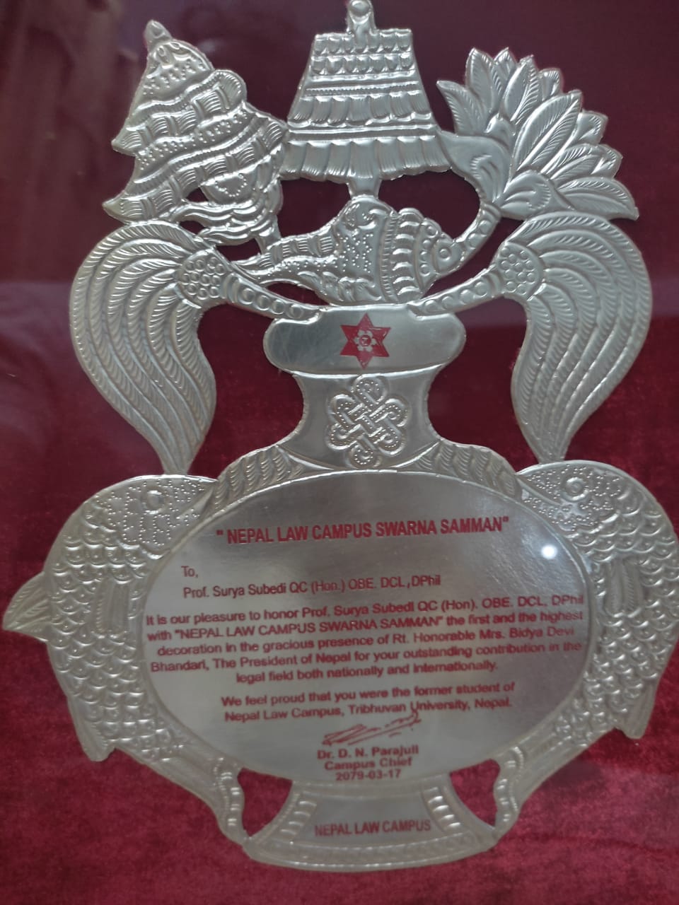 सो अवसरमा नेपाल ल क्याम्पस स्वर्ण सम्मानबाट संविधानसभाका अध्यक्ष सुवासचन्द्र नेम्वाङ र प्राध्यापक डा सूर्य सुवेदीलाई सम्मान गरिएको छ । नेम्वाङ र सुवेदीलाई राष्ट्रपति भण्डारीले सम्मान प्रदान गरेकी थिइन् ।