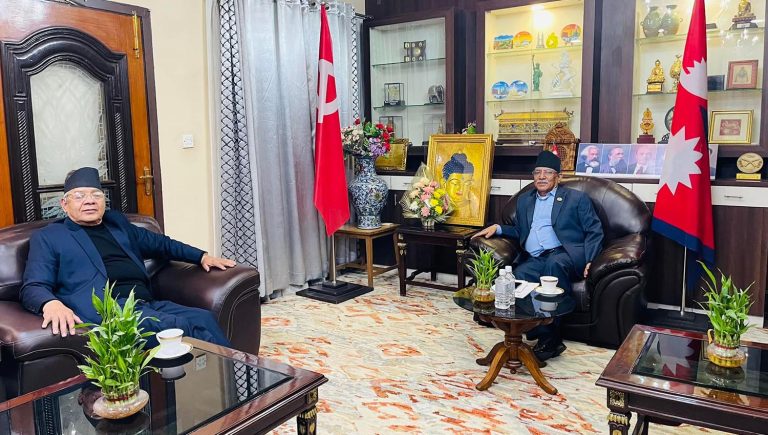 काठमाडौं । नेकपा माओवादी केन्द्रका अध्यक्ष पुष्पकमल दाहाल प्रचण्ड र नेकपा एकता राष्ट्रिय अभियानका संयोजक वामदेव गौतमबीच भेटवार्ता भएको छ । दुई नेताबीच सोमबार साँझ नेकपा माओवादी केन्द्रको संसदीय दलको कार्यालय सिंहदरबारमा भेटवार्ता भएको हो ।