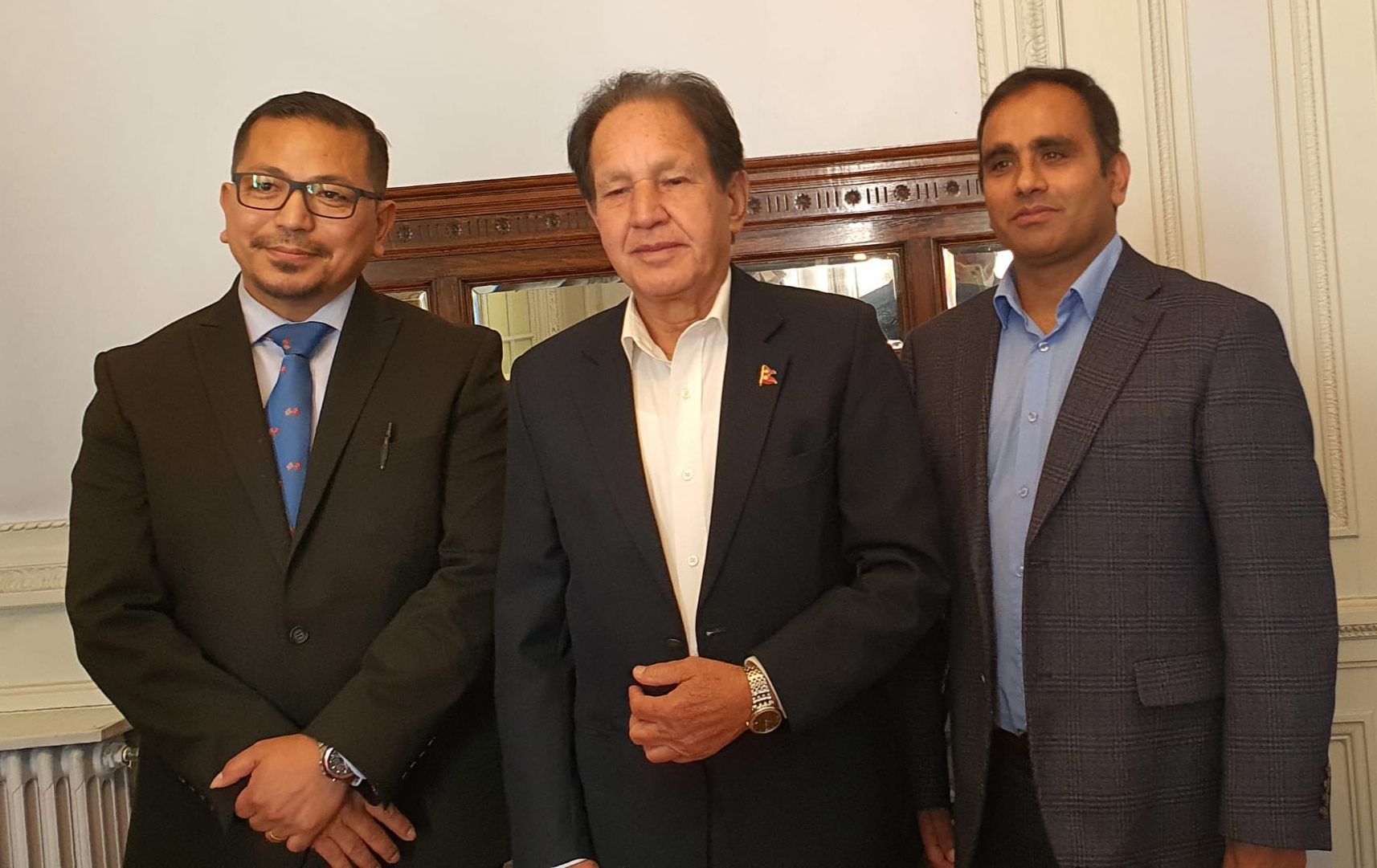 गैरआवासीय नेपाली संघ यूकेका महासचिव खुशी लिम्बुका अनुसार प्रतिनिधि मण्डलले शनिवार बिहान मन्त्री खड्कालाई लण्डनस्थित नेपाली दुतावासमा भेटघाट गरेको हो ।