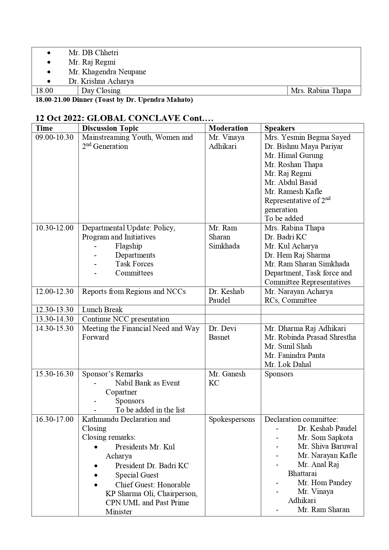 तीन दिन सम्म चल्ले समारोहको अन्तिम दिन बुधवार (१२ तारिख) समापन समारोहलाई पूर्वप्रधानमन्त्री केपी ओलीले सम्बोधन गर्ने कार्यक्रमतय गरिएको छ ।