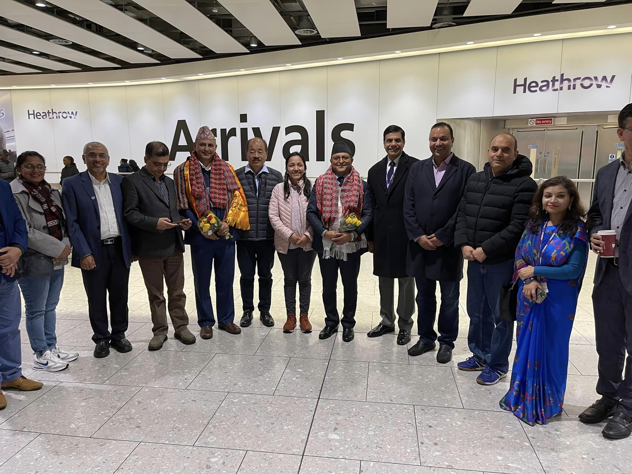 सोमबार बिहान हिथ्रो बिमानस्थलमा अध्यक्ष तिमल्सिना र पुष्प तिमल्सिनालाई बेलायतका लागि नेपाली राजदूत ज्ञानचन्द्र आचार्य, ओएनएफ यूके अध्यक्ष तुंग भद्र भुसाल, दूतावासका प्रवक्ता रोशन खनालले स्वागत गरे ।
