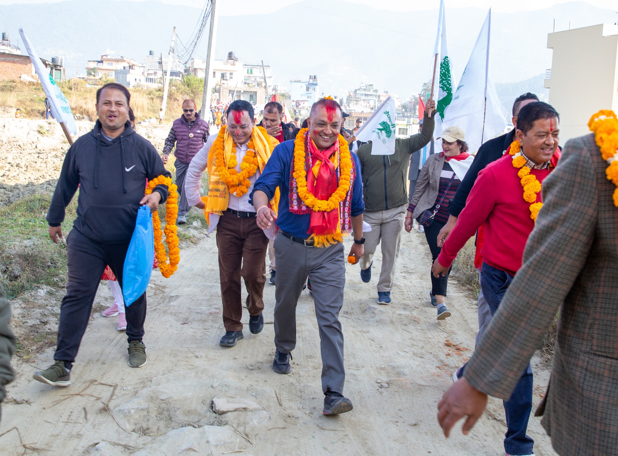 विहिबार बूढानीलकण्ड नगरपालिका वार्डहरुमा थापा पुग्दा जनताले उत्साहजक रुपमा स्वागत गरे । यसैबीच चिकित्सा शिक्षा सुधारका अभियान्ता डा. गोविन्द केसीले थापाकै पक्षमा खुलेर उभिए । यसअघि अधिवक्ता कृष्ण प्रसाद भण्डारीले समेत थापालाई जितको शुभकामना दिएका थिए ।