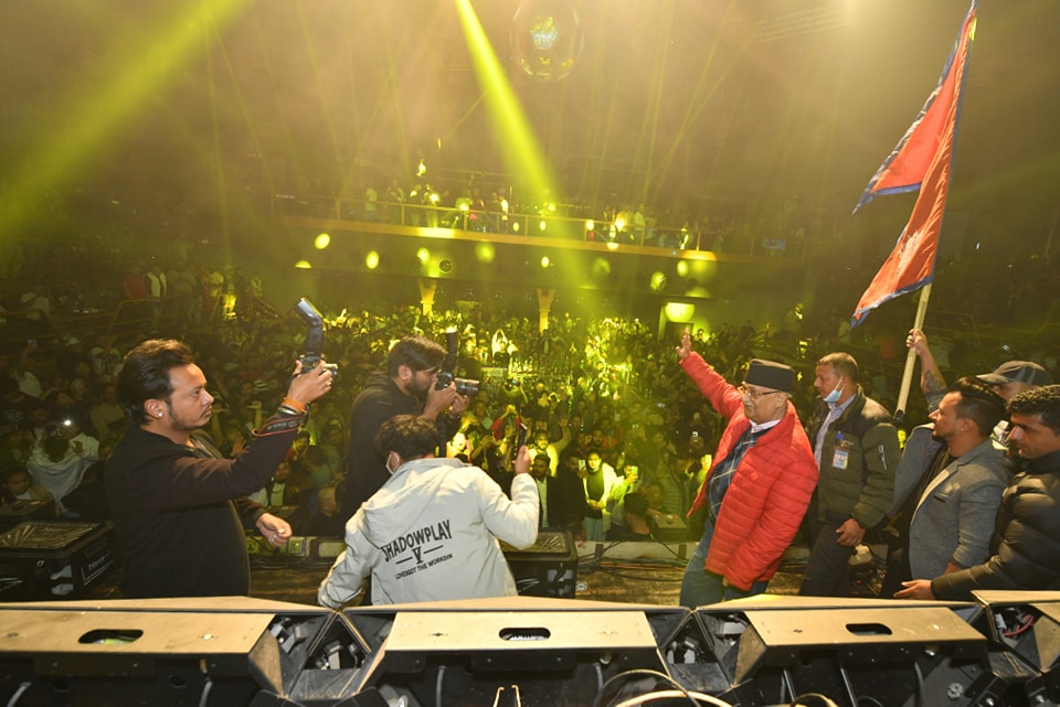 पूर्व राजा ज्ञानेन्द्र बेला बेला गइरहने यो क्लबमा सयौँको भिडमा ओलीले एमालेको चुनावी र्याप गीत सार्वजनिक समेत गर्नुभयो ।