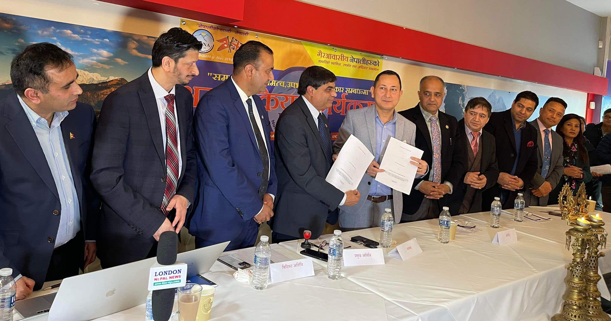 कार्यक्रममा गैर–आवासीय नेपाली संघ बेलायत र नेपाल बार एसोसियसनवीच संयुक्त कार्यपत्रमा सम्झौता गरिएको छ । सम्झौता पत्रमा बार एसोसिएसनका अध्यक्ष गोपाल कृष्ण घिमिरे र गैर–आवासीय नेपाली संघ बेलायतका अध्यक्ष सुनिल बाबु खडकाले हस्तांक्षर गरेका छन् ।