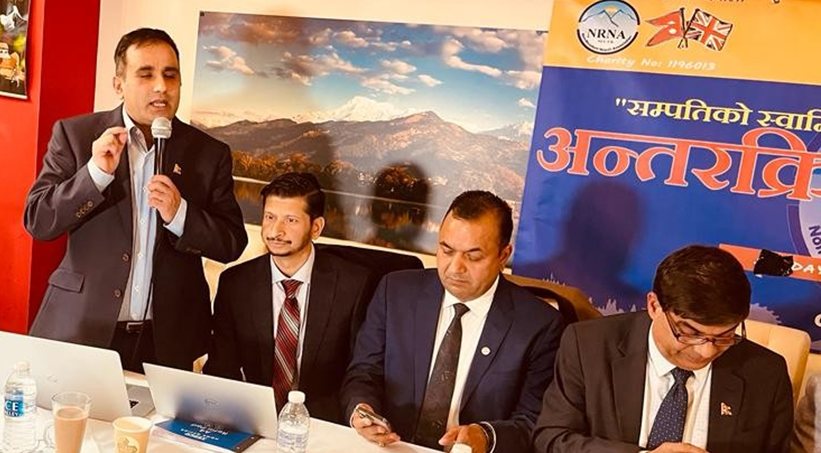 एनआरएनए यूके अध्यक्ष सुनिल बाबु खड्काको अध्यक्षतामा भएको उक्त अन्तरक्रिया कार्यक्रमको समुद्घाटन, अध्यक्ष खड्का, गैर–आवासीय नेपाली संघ अन्तराष्ट्रिय समन्वय परिषदका अध्यक्ष कुल आचार्य, नेपाल बार एसोसिएसनका अध्यक्ष एवं वरिष्ट अधिवक्ता गोपाल कृष्ण घिमिरेले गरेका थिए ।