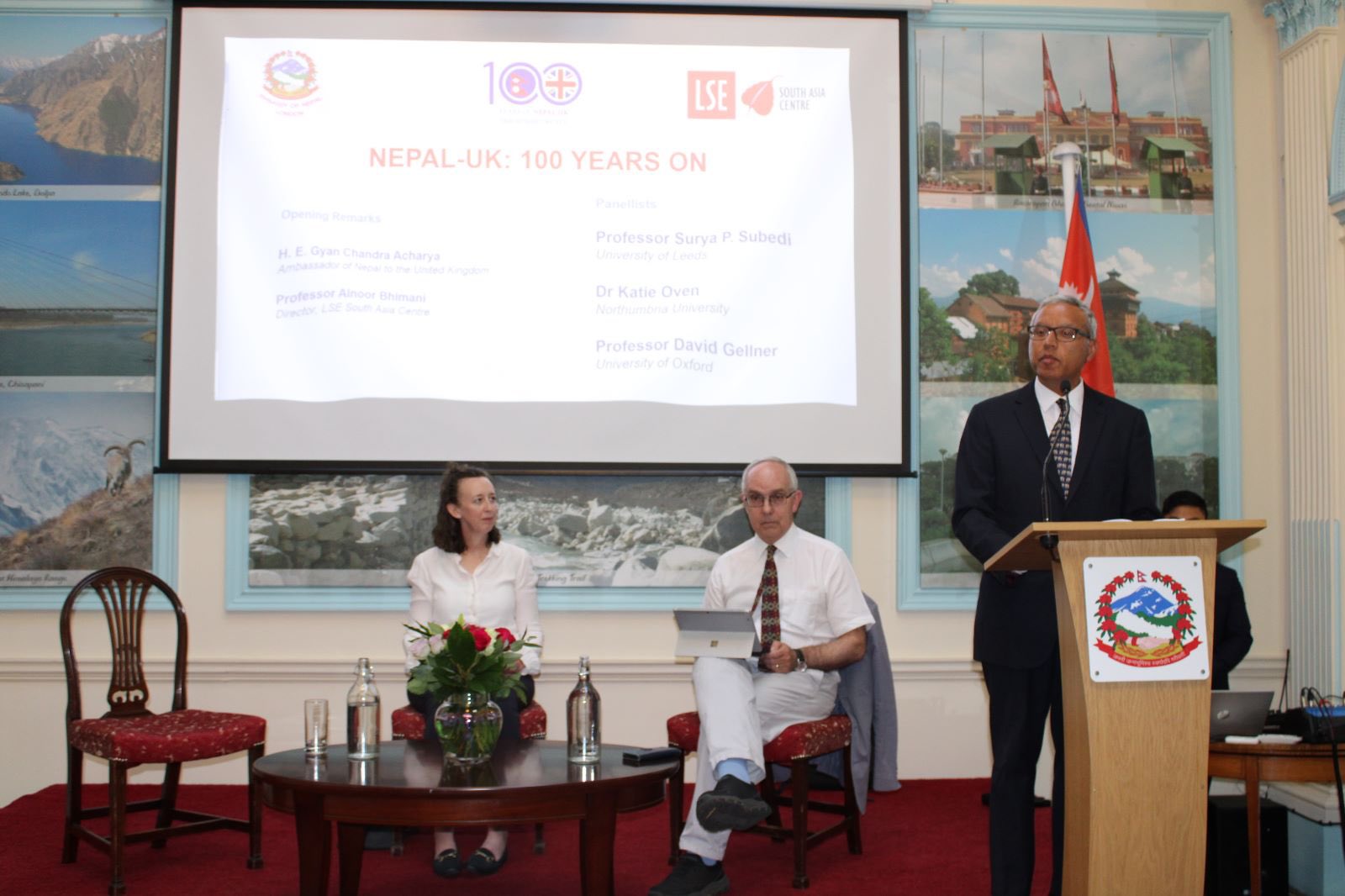 कार्यक्रममा बेलायतका लागि नेपाली राजदूत ज्ञानचन्द्र आचार्यले सन् १९२३ मा सम्पन्न मैत्री सन्धिको महत्वबारेमा जानकारी दिए ।