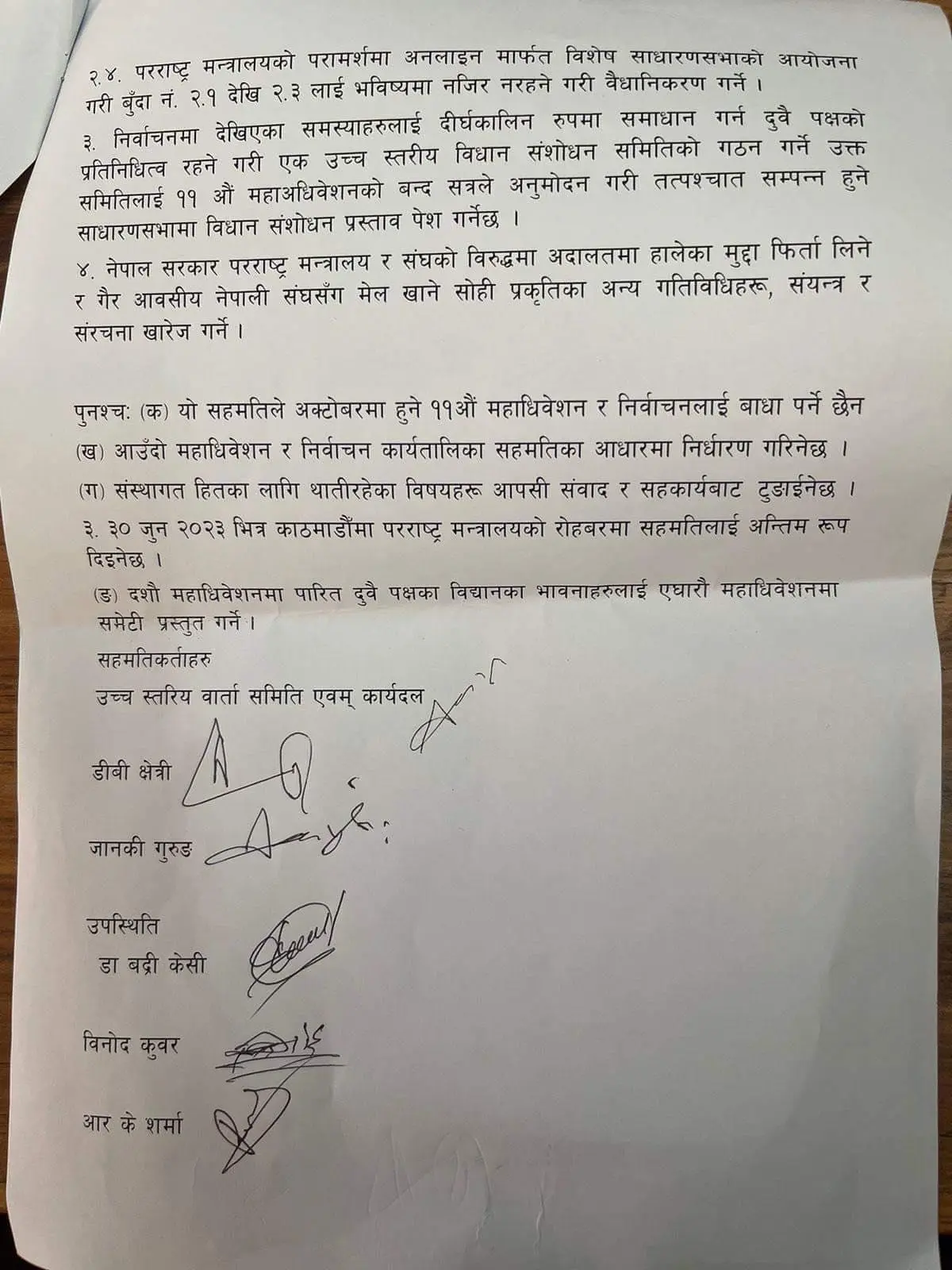 सहमतिपत्रमा संघको तर्फबाट वार्ता समितिका संयोजक डिबी क्षेत्री र अर्को समूहबाट जानकी गुरुङले हस्ताक्षर गरेका छन् ।