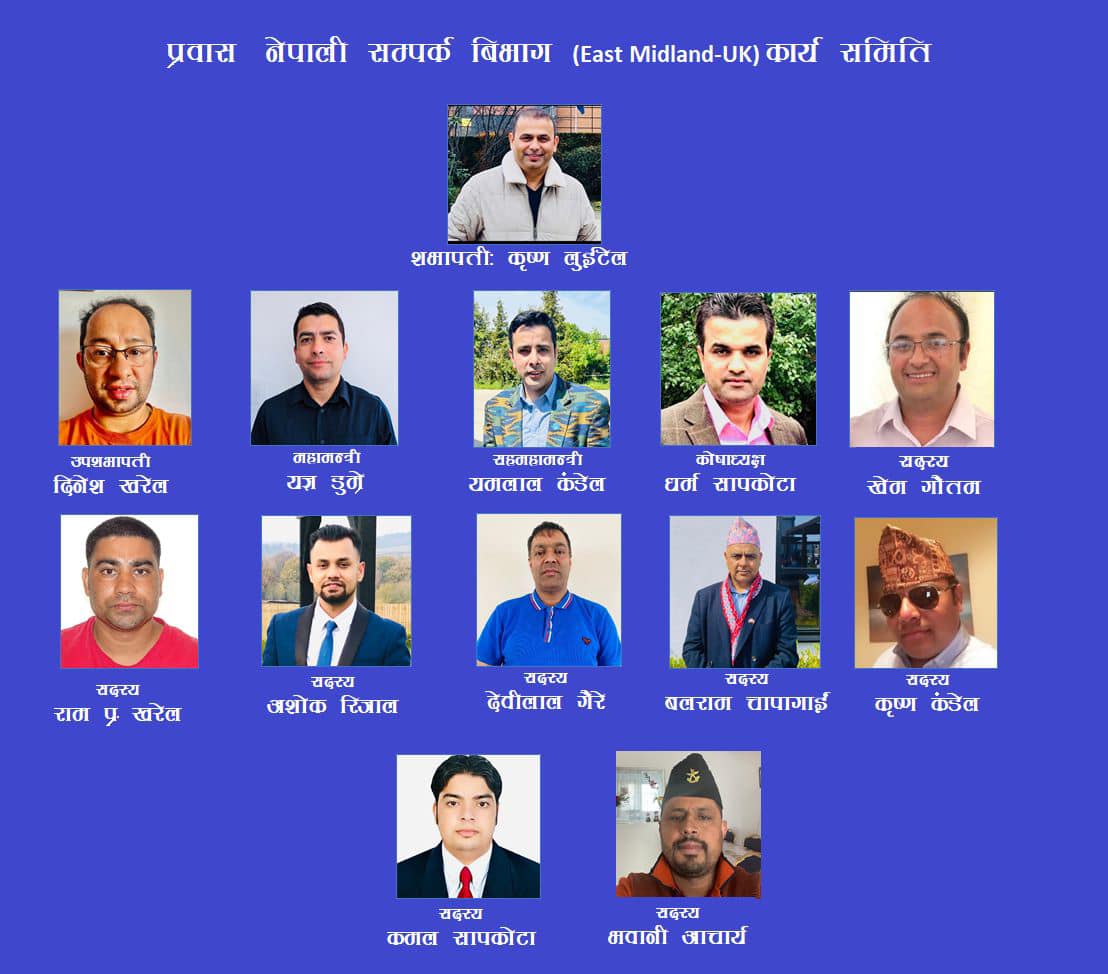 लण्डन । राष्ट्रिय स्वतन्त्र पार्टी अन्तरर्गतको प्रवासी नेपाली सम्पर्क विभाग वेष्ट मिडल्याण्ड बेलायतको सभापतिमा कृष्ण लुइंटेल चयन भएका छन् ।