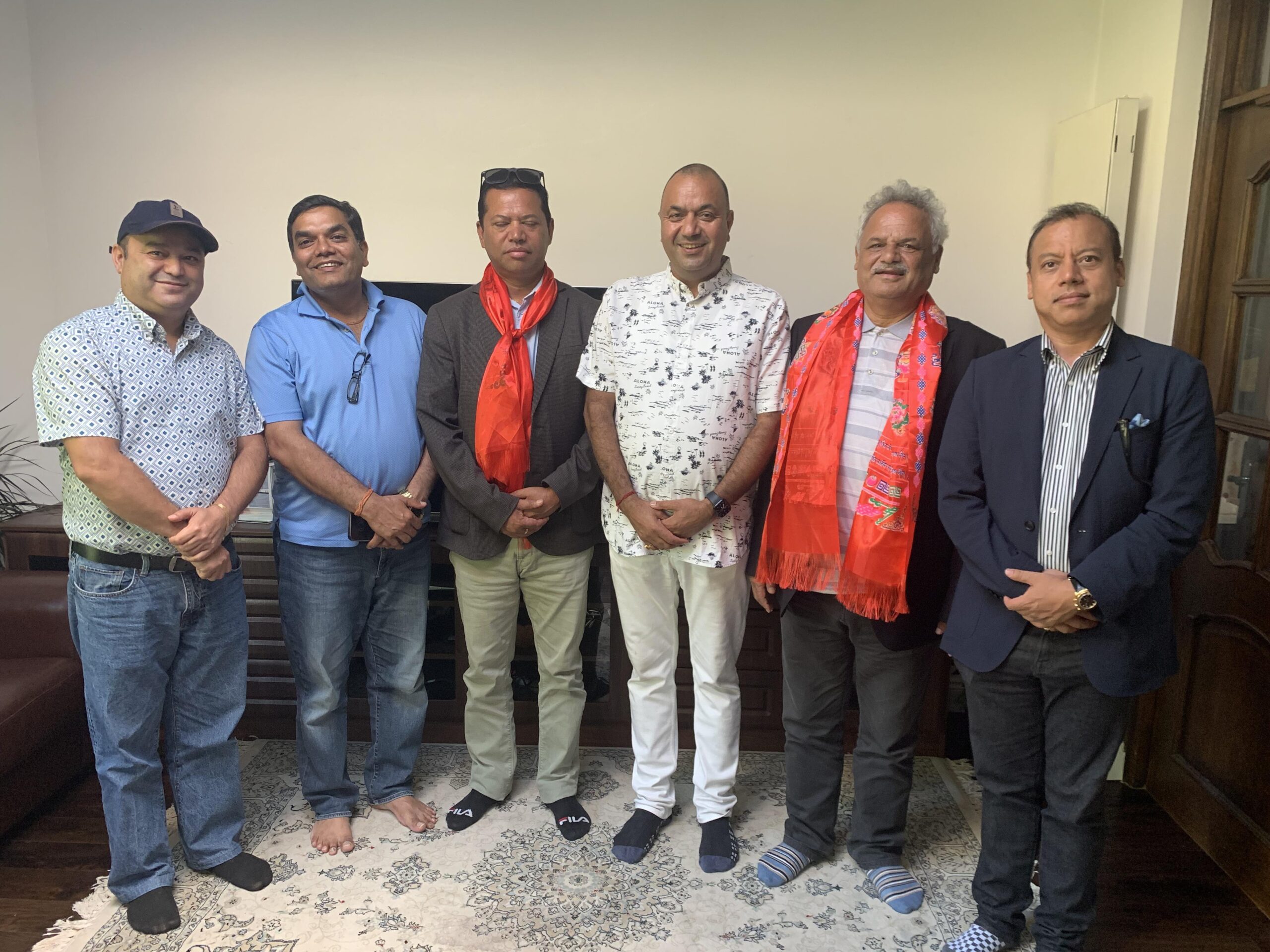 नेपालमा रहेका अध्यक्ष कुल आचार्य, उपाध्यक्षहरु महेश श्रेष्ठ, राज रेग्मी, महासचिव डा केशव पौडेल, सचिव गंगाधार गौतम, अनुजा प्रधान (बेल्जियम) एनआरएनए अमेरिकाका निवर्तमान अध्यक्ष बुद्धि सुवेदी, क्यानडाका निवर्तमान अध्यक्ष दीपक गौतम, एनआरएनए प्रोर्चुगलका पूर्वअध्यक्ष भिम कमल केसी लगायतको टोली लण्डन आइपुगेको छ ।