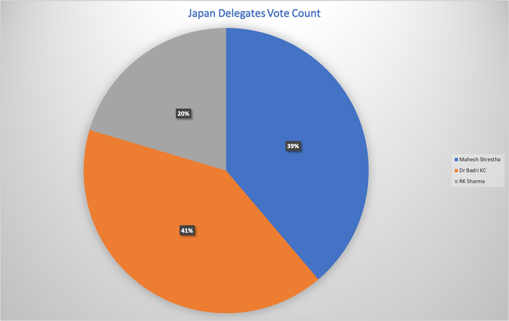 स्रोतका अनुसार संघको निर्वाचनमा अध्यक्षको लागि पुनः उम्मेदवारी दिने तयारी गरेका डा। बद्री केसीले श्रेष्ठकै कर्मथलोमा बलियो अड्डा जमाएको आंकलन गरिएको छ । दुवै पक्षले आआफ्नो आधिकारी प्यानलको घोषणा नगरे पनि जापानबाटै केसीको प्यानलमा रहेर उम्मेदवार बन्न आदी दर्जन भन्दा बढी उम्मेदवार तयार भएका छन् ।