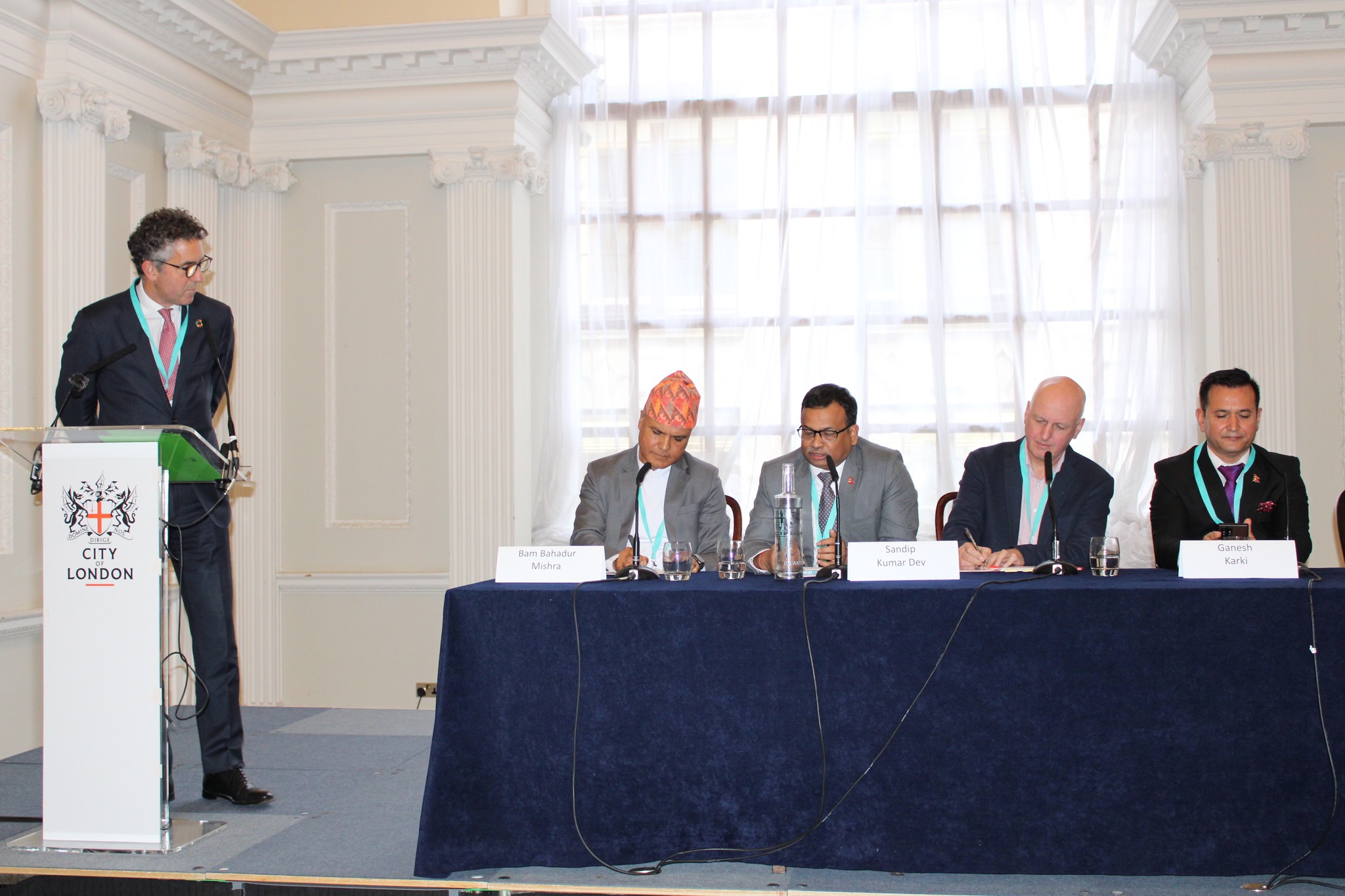 कार्यक्रममा मन्तव्य व्यक्त गर्दै सिटी अफ लण्डनका अल्डरम्यान तथा सेरिफ ब्रोनेक मसोजादाले सिटी अफ लण्डनमा प्रशस्त वित्तीय श्रोत तथा जोखिम बहन गर्ने वीमा कम्पनीहरु रहेका र नेपालको दिगो विकासका लागि सिटी अफ लण्डनको सहयोग रहने बताउनुभयो।बेलायती परराष्ट्र मन्त्रालयका निर्देशक बेन मेलरले गत केही वर्षमा ब्रिटिश इन्टरनेशनल इन्भेस्टमेन्टमार्फत् नेपालको बिभिन्न क्षेत्रमा लगानी बढ्दै गएको र वैदेशिक लगानीको वातावरण सुधारका लागि बेलायतले सहयोग गरिरहेको बताउँदै नेपालको अति कम विकसित मुलुकबाट विकासशील मुलुकमा स्तरोन्नति हुने प्रक्रियालाई सहज बनाउन निरन्तर सहयोग गर्ने प्रतिवद्धता व्यक्त गर्नुभयो। बेलायती संसदमा बेलायत नेपाल संसदीय समूहका अध्यक्ष वीरेन्द्र शर्माले नेपाल-बेलायत ऐतिहासिक सम्बन्धको चर्चा गर्दै नेपालका बिभिन्न क्षेत्रमा लगानीका प्रशस्त सम्भावनाहरु रहेको बताउनुभयो।