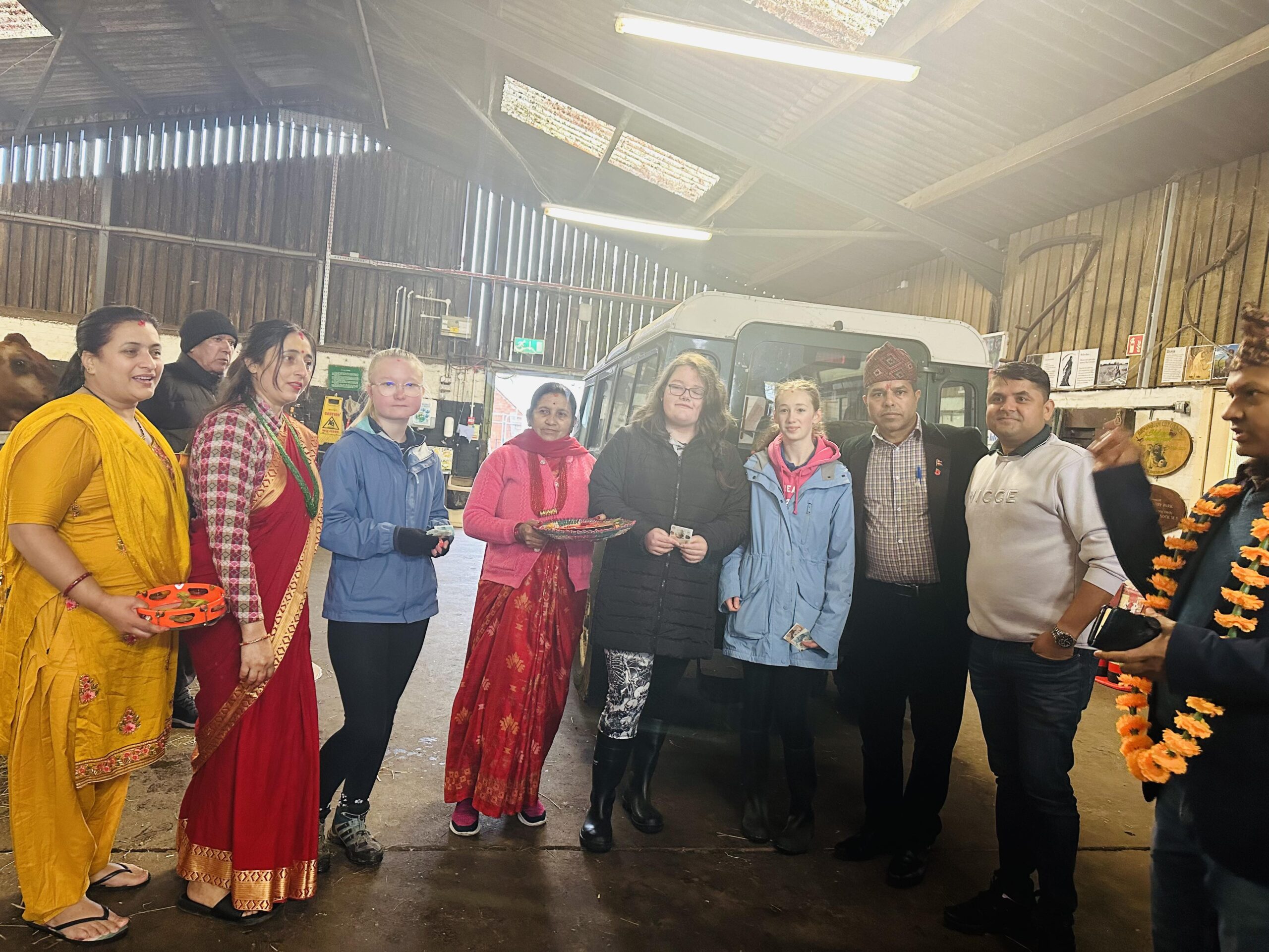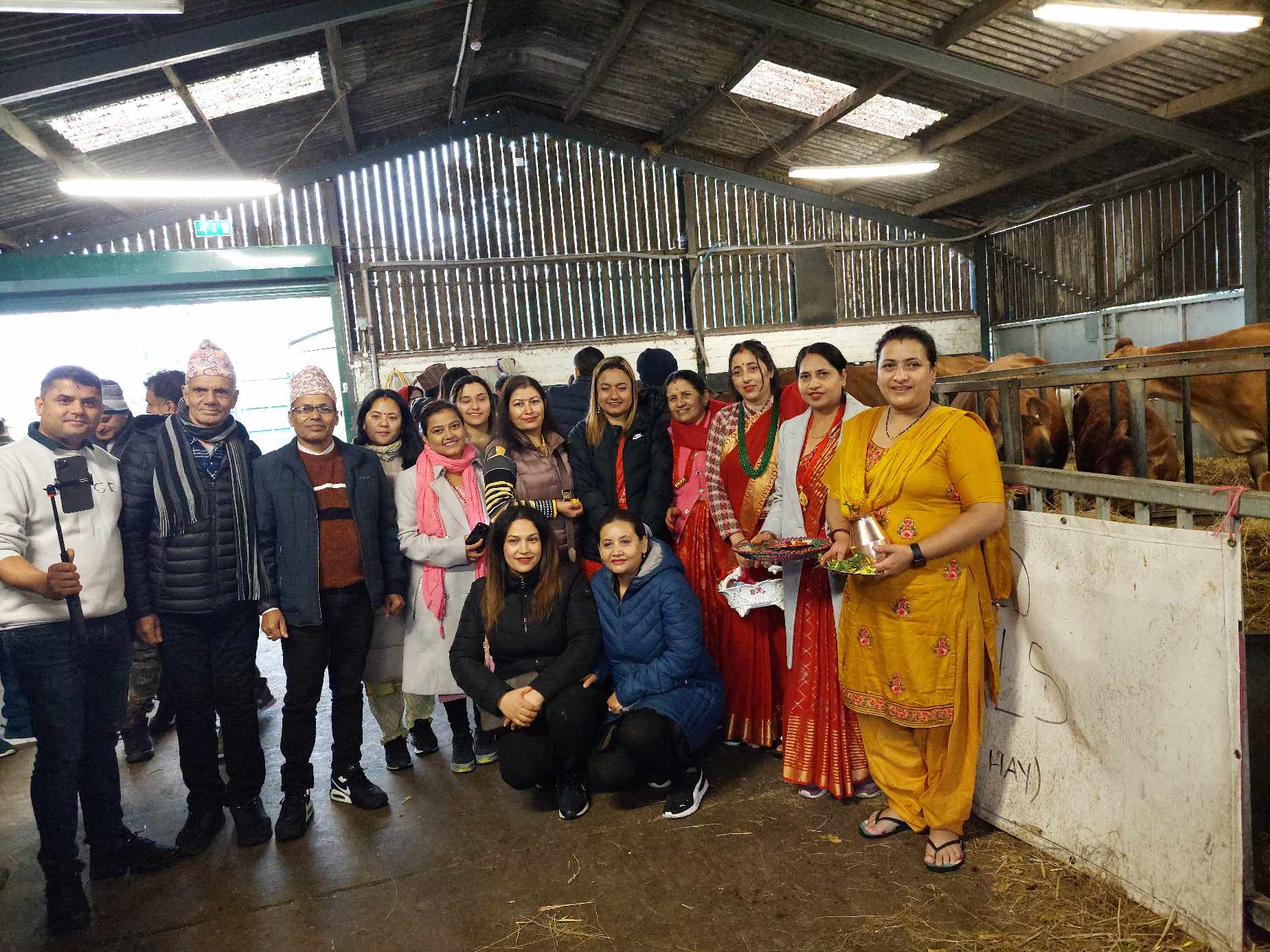 सेल्डोन काउन्टि पार्क एण्ड वल्र्ड रेक्टोरी फाममा विधिपूर्वक गाईको पूजा गरी गाईलाई खानेकुरा खान दिएका हुन्।