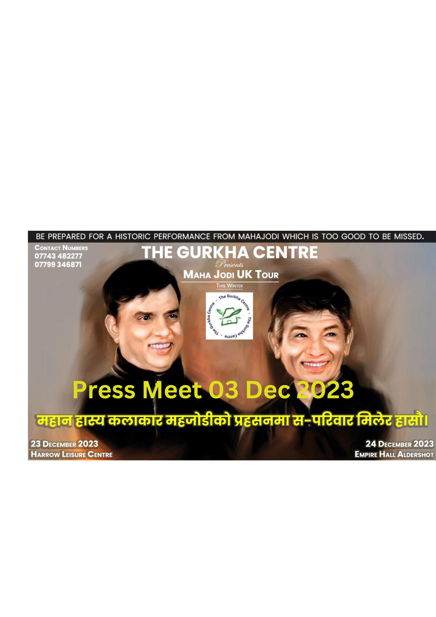 कार्यक्रमबारे जानकारी दिन आइतबार आयोजित भर्चुअल पत्रकार सम्मेलनमा सेन्टरका संस्थापक तथा सिइओ भीम तामाङले मह जोडीको पहिलो कार्यक्रम आउंदो २३ डिसेम्बर दिउसो ४ देखि हयारोस्थित ह्यारो लिजर सेन्टर र दोश्रो कार्यक्रम क्रिसमस इभ अर्थात २४ डिसेम्बर अपरान्ह ४ बजेदेखि अल्डरसटस्थित एम्पायर हलमा तय भएको जानकारी दिए ।