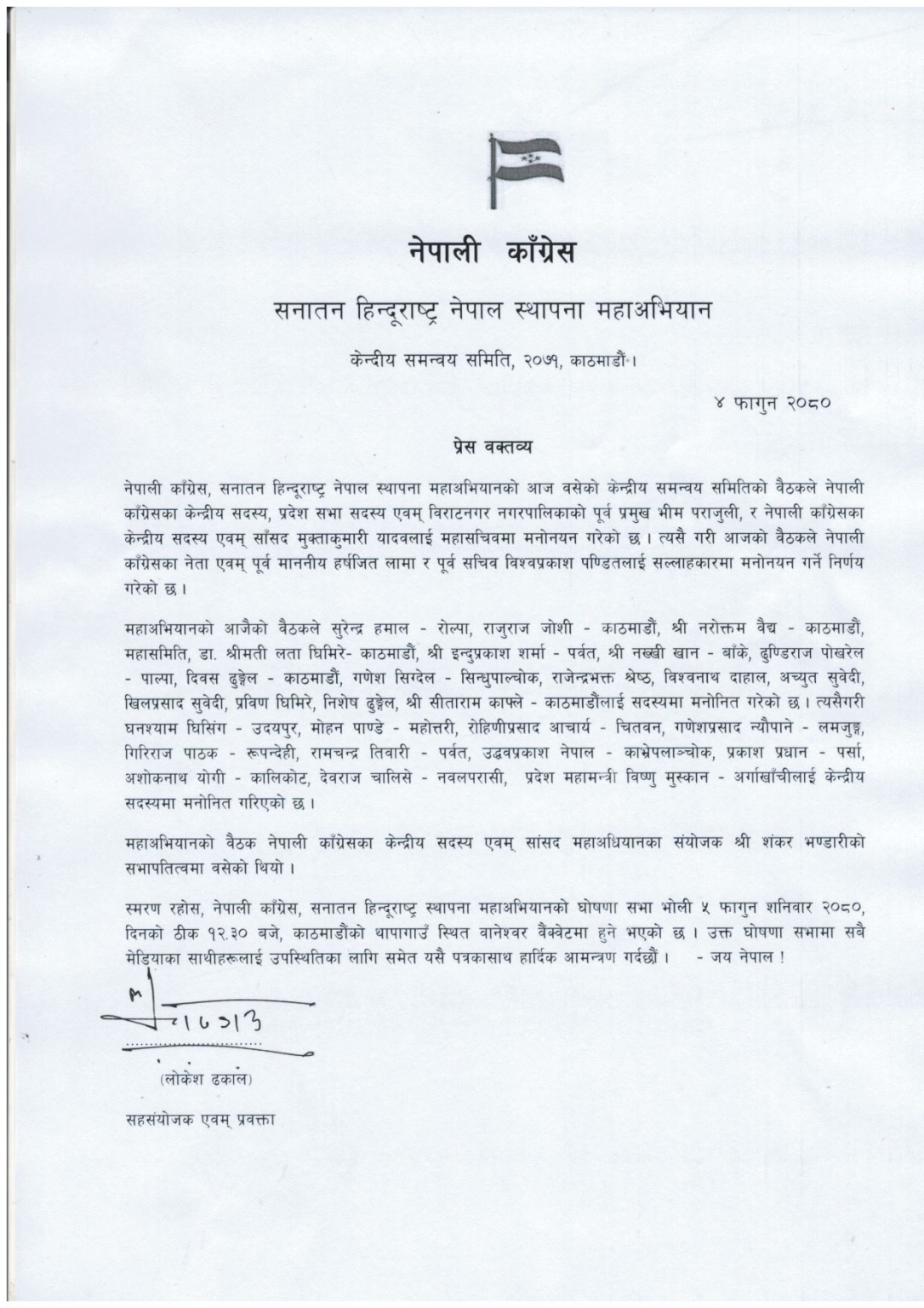 कांग्रेस केन्द्रीय सदस्य तथा शंकर भण्डारीको संयोजकत्वमा आज महाअभियानको घोषणा हुन लागेको हो।