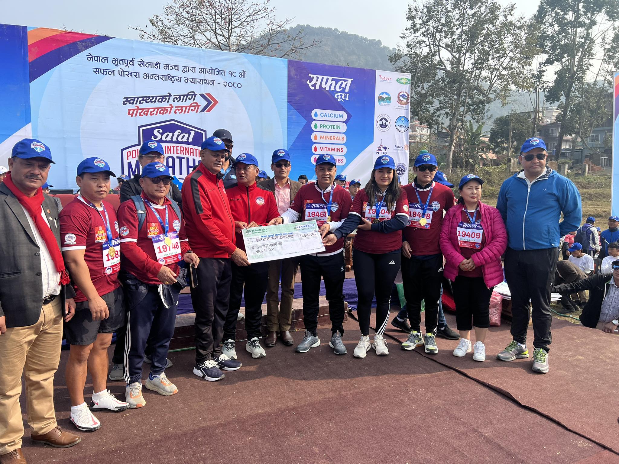 बिहीबार पोखरेली मञ्च युकेले तमु धिं यूके, बगर भाई खलक यूकेबाट संकलित १९ लाख २४ हजार २ सय ४० रुपैयाँ पोखरा म्याराथनका लागि सहयोग गरेको थियो ।