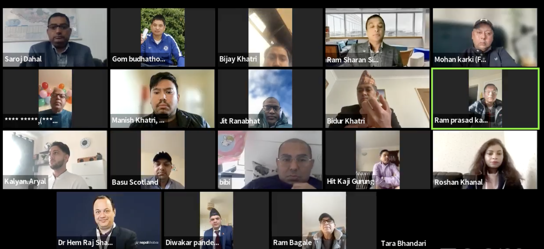 गैरआवासीय नेपाली संघ स्कटल्याण्डका अध्यक्ष दिवाकर पाण्डेको अध्यक्षतामा सम्पन्न कार्यक्रममा मनिष खत्रीले स्वागत मन्तव्य दिएका थिए । कार्यक्रम रामप्रसाद कंडेलले सञ्चालन गरेका थिए ।