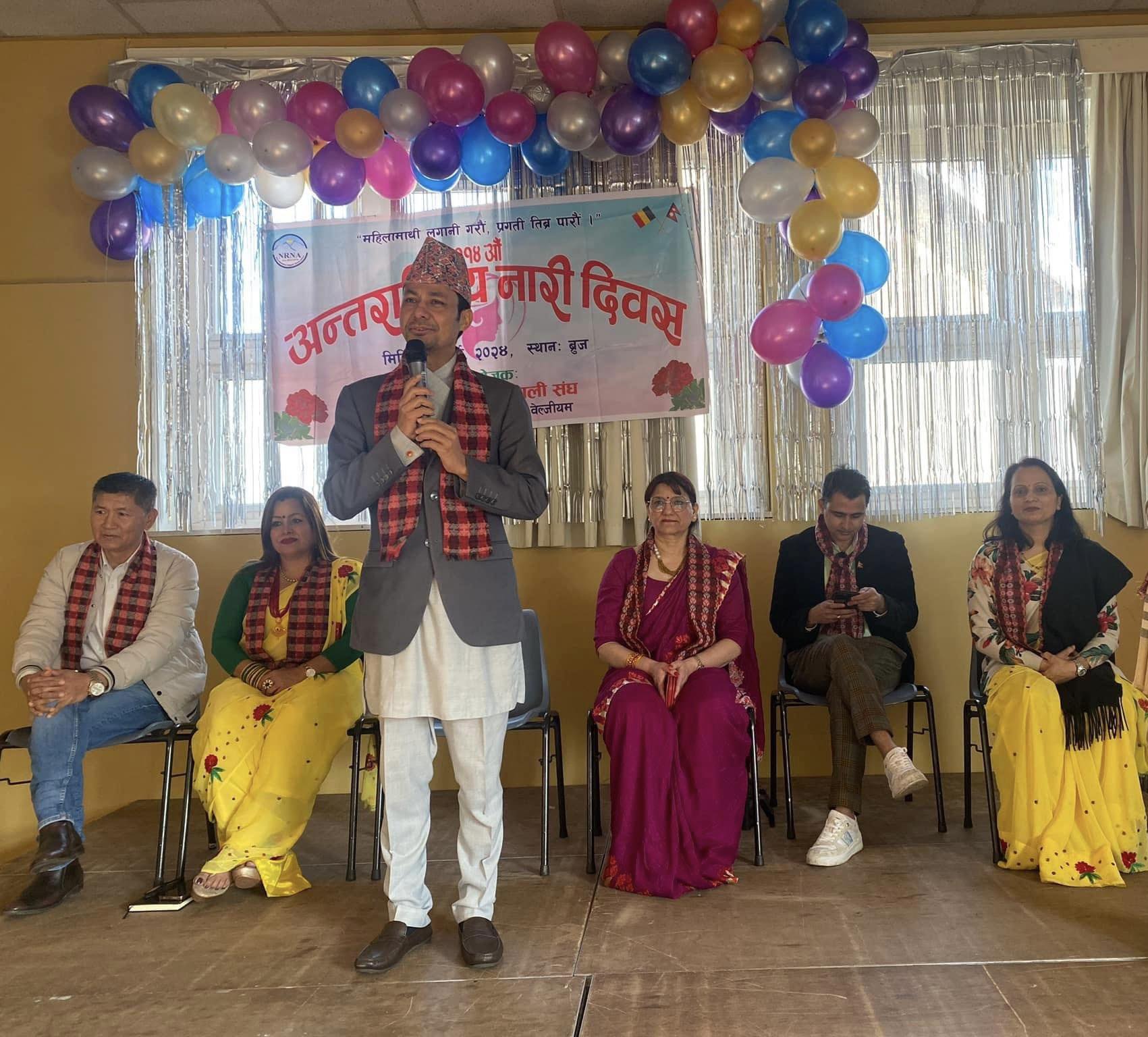 ब्रुज । गैरआवासीय नेपाली संघ बेल्जियमले अन्तराष्ट्रिय नारी दिवस मनाएको छ । संघको आयोजनामा ब्रुजमा शुक्रवार आयोजित कार्यक्रमलाई बेल्जियमका लागि नेपाली राजदूत गहेन्द्रराज भण्डारीले सम्बोधन गरेका थिए । राजदूत भण्डारीले नेपाली महिला सशक्तिकरणको लागि सहयोग गर्न संघलाई आब्हान गरे । उनले दुतावास बेल्यिममा रहेका नेपाली समुदायसंग सहकार्य गर्दै अघि बढ्ने प्रतिबद्धता व्यक्त गरे ।