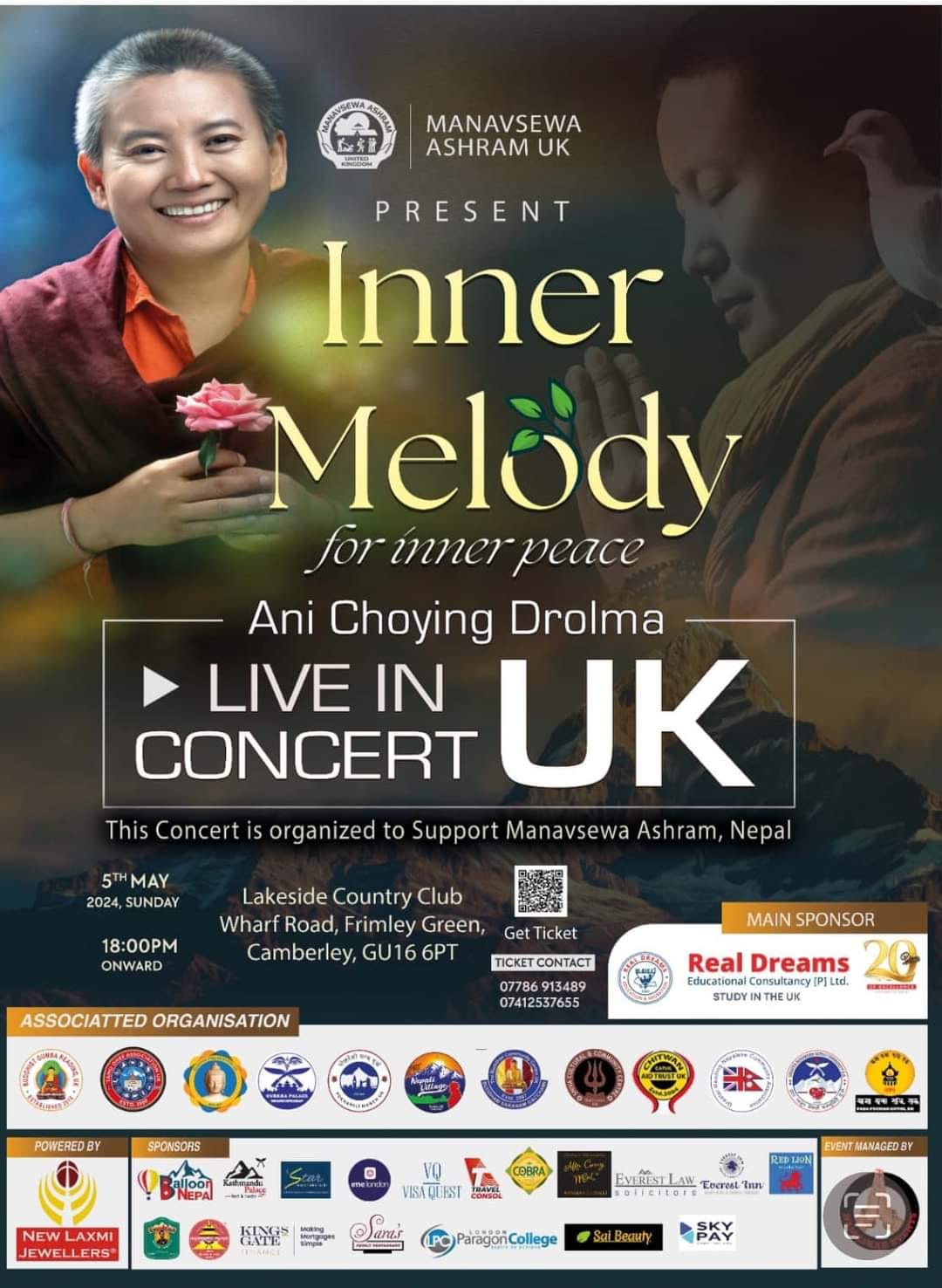 मानवसेवा आश्रम यूकेद्वारा मिति ५ मे २०२४ का दिन राष्ट्रीय तथा अन्तरास्ट्रिय जगतमा ख्याती प्राप्त गायिका तथा समाजसेवी लामाको सांगीतिक कन्सर्ट इनर मेलोडी फर इनार पिसमा सहभागी हुने भएकी हुन् ।