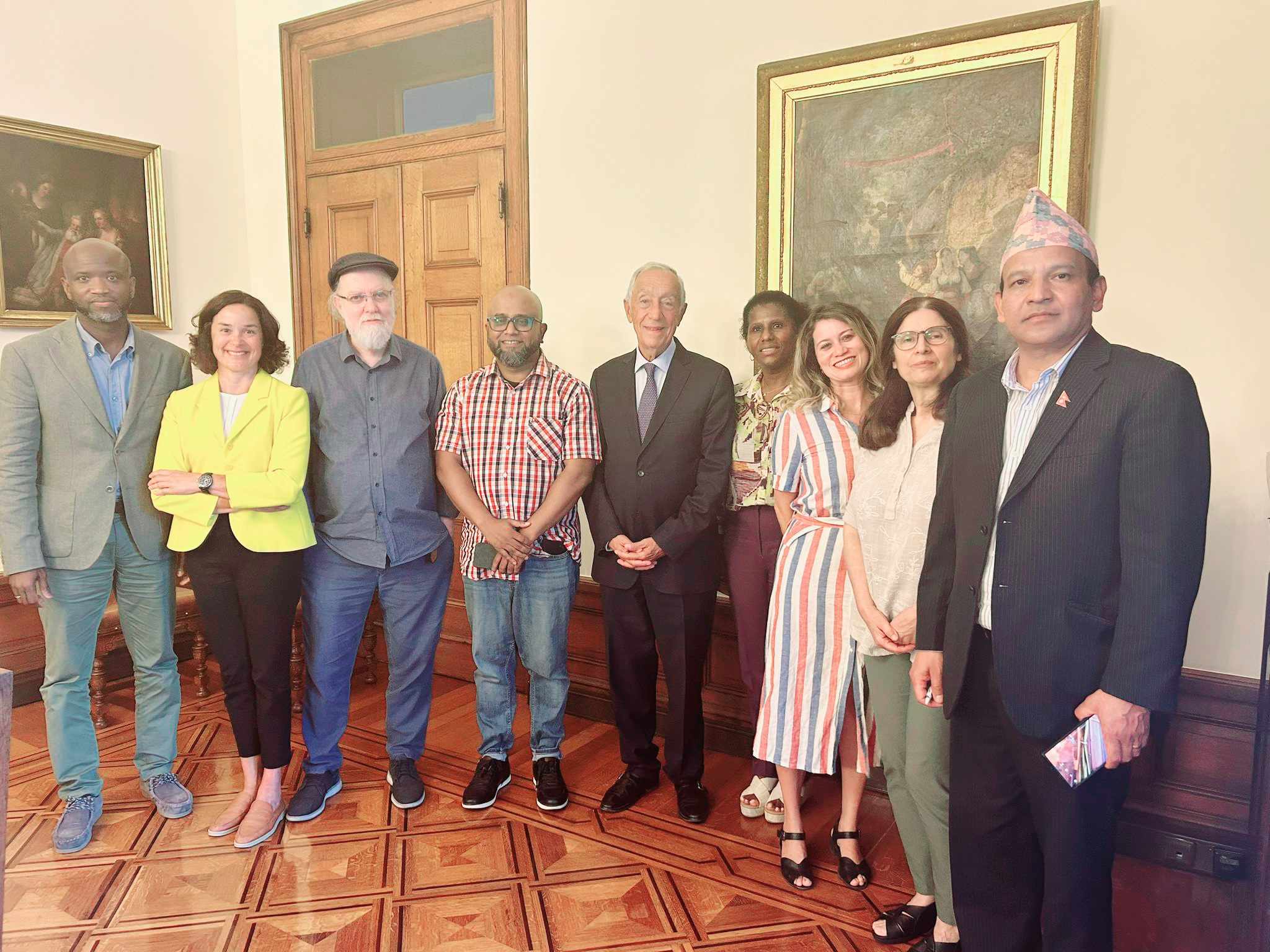 लिस्बन । गणतन्त्र पोर्चुगलका राष्ट्रपति मार्सेलो रेबेलो दि सौसासंग आज उहाँकै निवास बेलेम प्यालेस लिस्बनमा नेपाल लगायत विभिन्न देशका आप्रवासी प्रतिनिधिहरुले आइतबार भेटवार्ता गरेका छन् ।