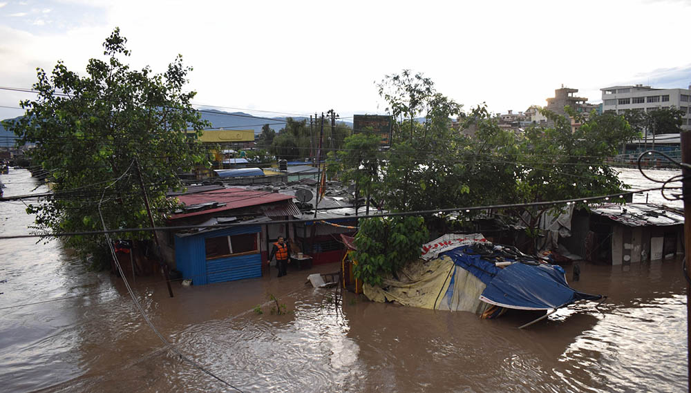 गए रातीदेखि भएको अविरल वर्षाका कारण काठमाडौँ उपत्यकाका विभिन्न नदी-खोला किनारा डुबानमा परेको छ । बल्खुस्थित तरकारी बजार र सुकुम्वासी बस्तीमा पनि बाढी पसेको छ ।।