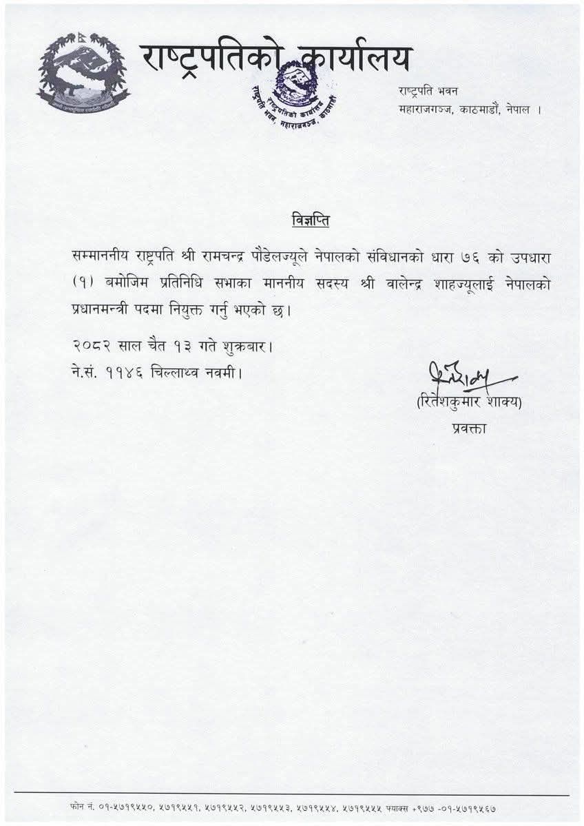 KATHMANDU: President Ram Chandra Paudel has appointed Rastriya Swatantra Party (RSP) parliamentary leader Balendra Shah (Balen) as Nepal’s Prime Minister. Under Article 76(1) of the Constitution, he was named the leader of the RSP parliamentary party that has the majority in the House of Representatives.Nepal travel guide