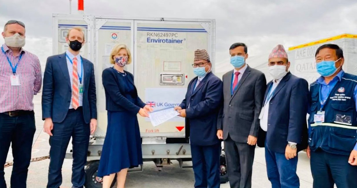 “I am delighted to be here today at airport in Kathmandu as over 130,000 Astra Zeneca vaccine doses donated to Nepal by the UK has just arrived in Nepal. The UK is Nepal’s oldest friend, with a strong partnership that has lasted for more than two hundred years,” a press statement issued by the embassy quoted Ambassador Pollitt as saying. “We have been supporting the Nepali people to fight this pandemic. These vaccines are direct bilateral support to Nepal, and they follow our $735m donation to the COVAX facility, as well as the supply of oxygen generation equipment, ventilators, and PPE sets.”