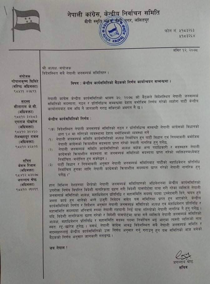जनसम्पर्क समिति बेलायतले काँग्रेसको कोभिड–१९ कोषमा पठायो ६ लाख ५५ हजार रुपैयाँ