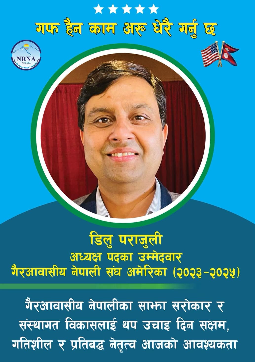 एनआरएनए अमेरिकाको अध्यक्षमा डिलु पराजुलीको उम्मेदवारी