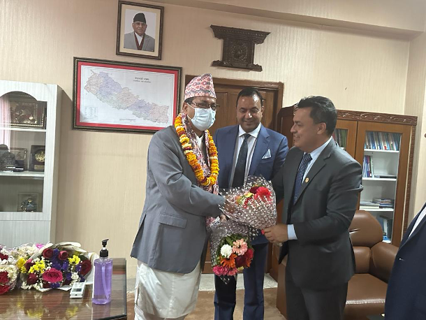 उपप्रधान तथा रक्षामन्त्री खड्का र एनआरएनए अध्यक्ष डा बद्री केसीबीच भेटवार्ता