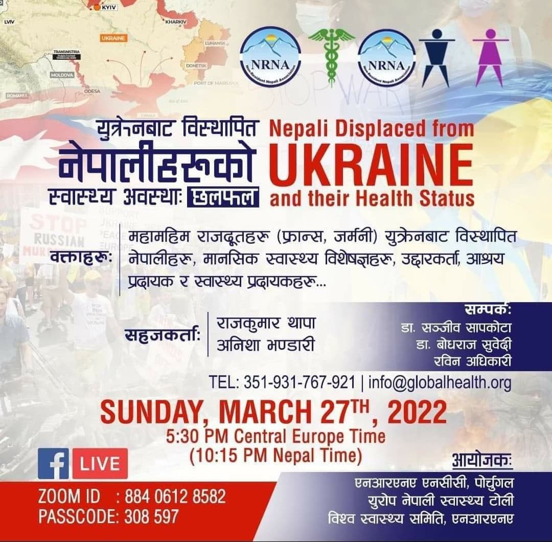 युक्रेनबाट विस्थापित नेपालीको स्वास्थ्य अधिकार सुनिश्चित गर्न एनआरएनए स्वास्थ्य समितिको आग्रह