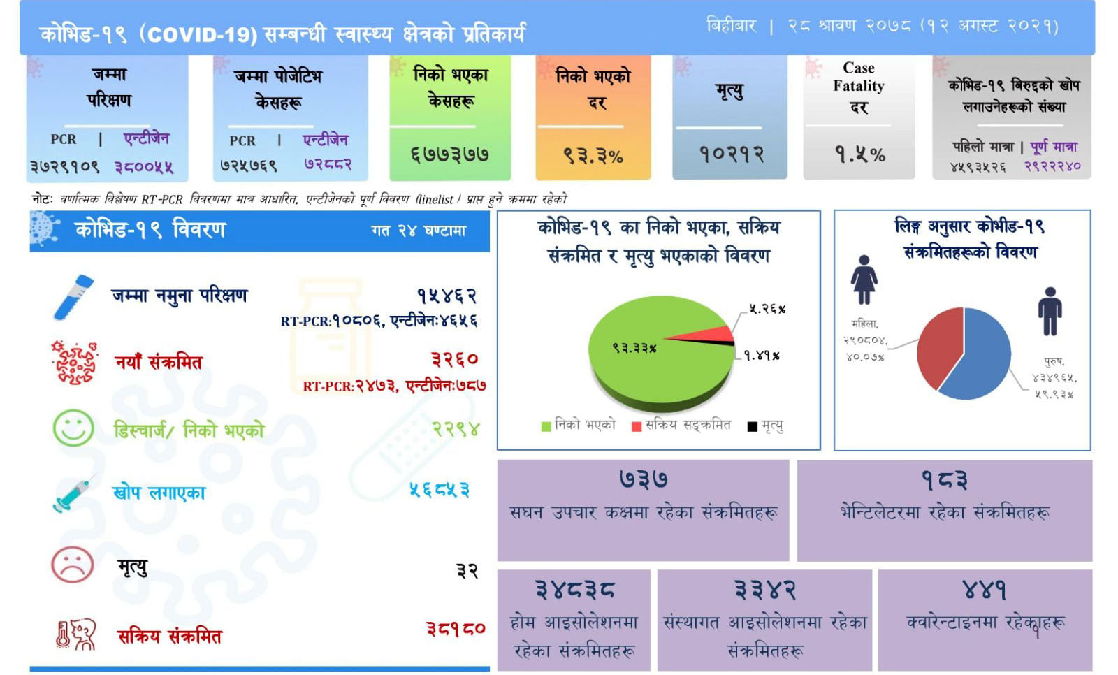 थपिए ३,२६० संक्रमित, ३२ जनाको मृत्यु