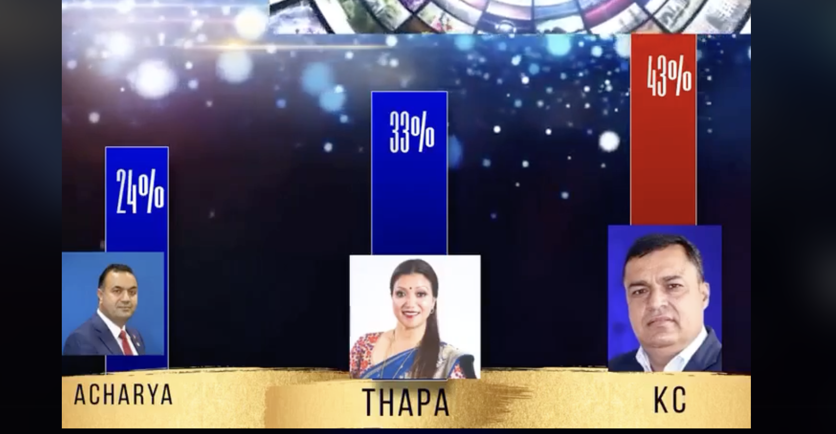 एनआरएनए निर्वाचन सर्वेक्षण : डा. केसी ४३, थापा ३३ आचार्य २४ प्रतिशत