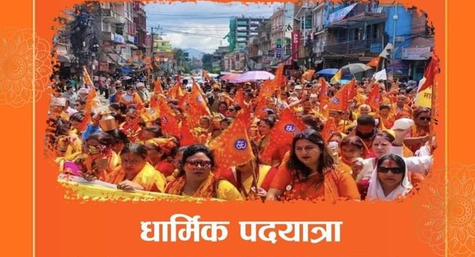 राप्रपानिकट धार्मिक संगठनले आज मैतीदेवी–पशुपतिनाथ धार्मिक पदयात्रा गर्दै
