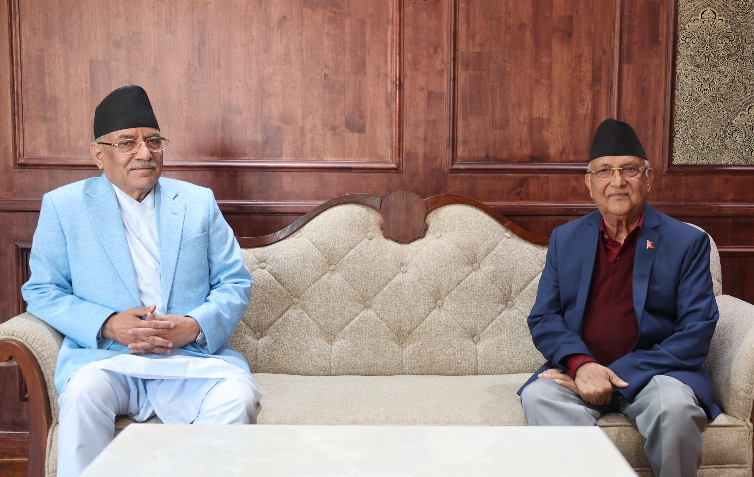 प्रधानमन्त्री प्रचण्ड र एमाले अध्यक्ष ओलीबिच भेटबार्ता