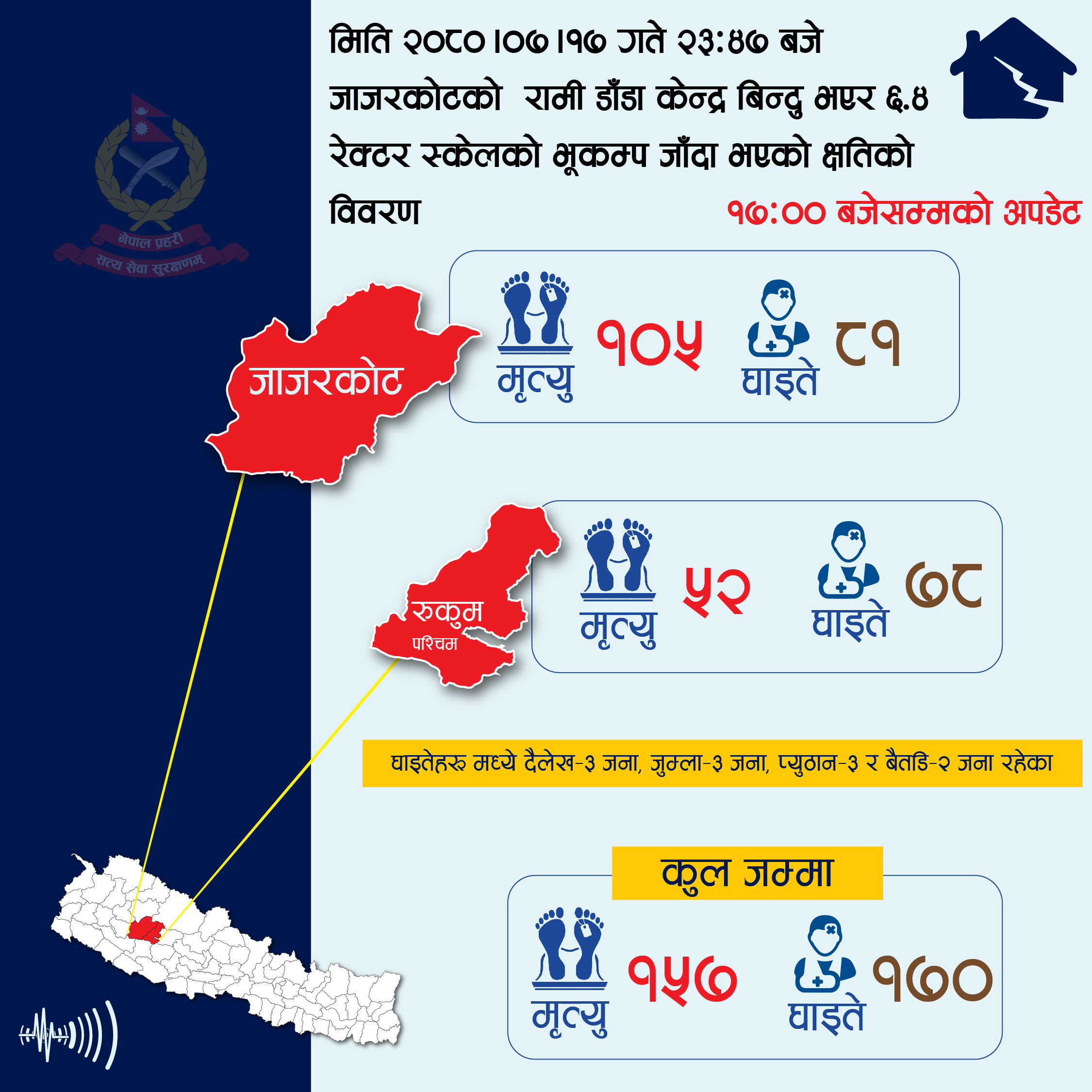 अपडेटः भुकम्पमा परी ज्यान गुमाउनेको संख्या १५७ पुग्यो