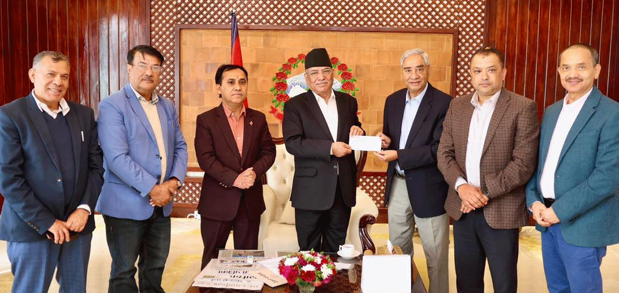 आइएमई ग्रुपद्वारा प्रधानमन्त्रीलाई रू डेढ करोडको चेक हस्तान्तरण