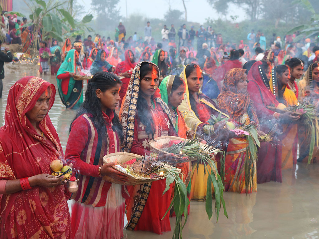 छठ पर्व : साँझ अस्ताउँदो सूर्यलाई अर्घ दिइने