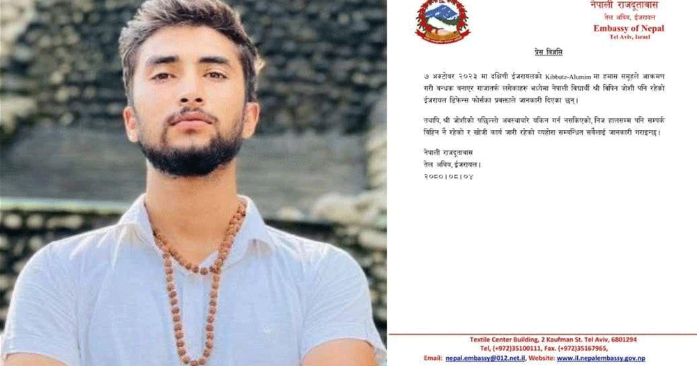 विपिन जोशी हमासको नियन्त्रणमा रहेको इजरायली सुरक्षा फौजद्वारा पुष्टि