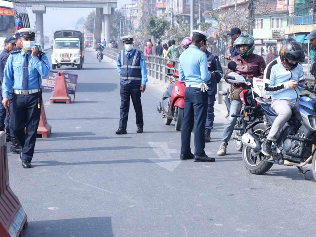 बिहीवार काठमाडौँमा अत्यावश्यक काममा मात्रै गाडी चलाउन ट्राफिक प्रहरीको आग्रह