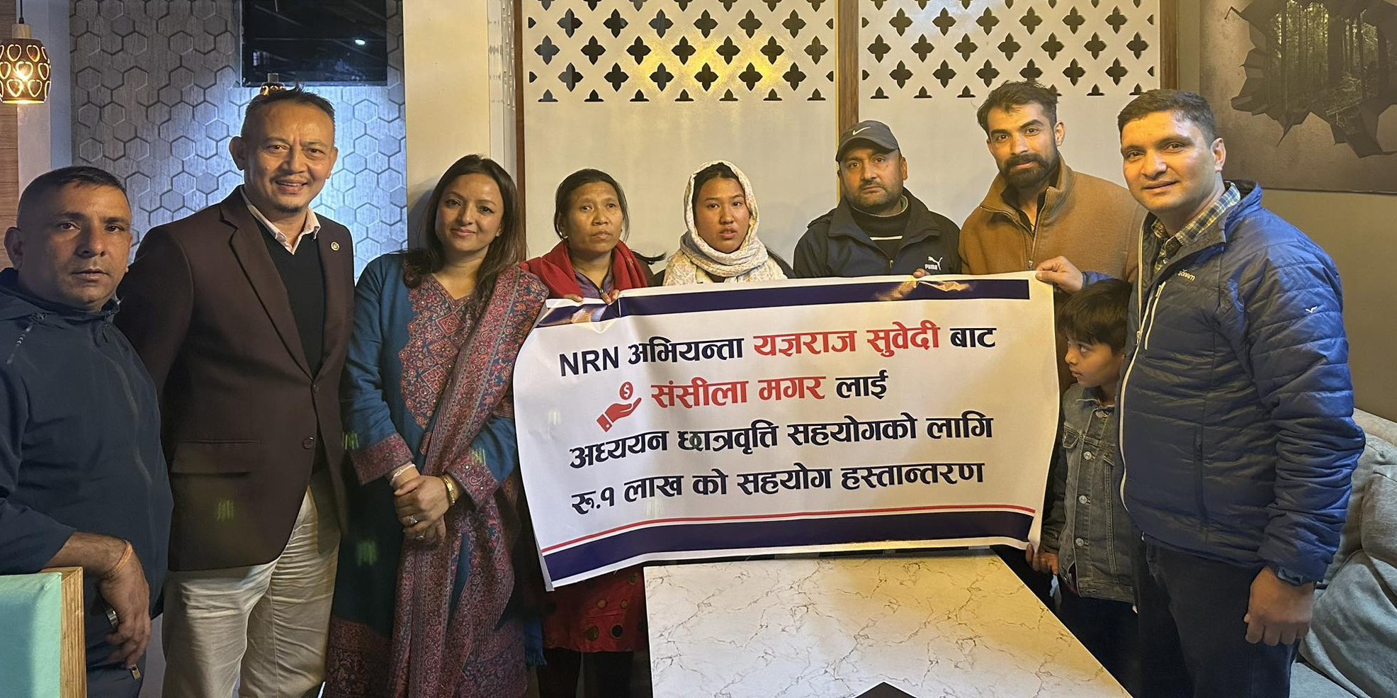 एनआरएनए अभियान्ता यज्ञराज सुवेदीद्धारा १ लाख छात्रवृति सहयोग