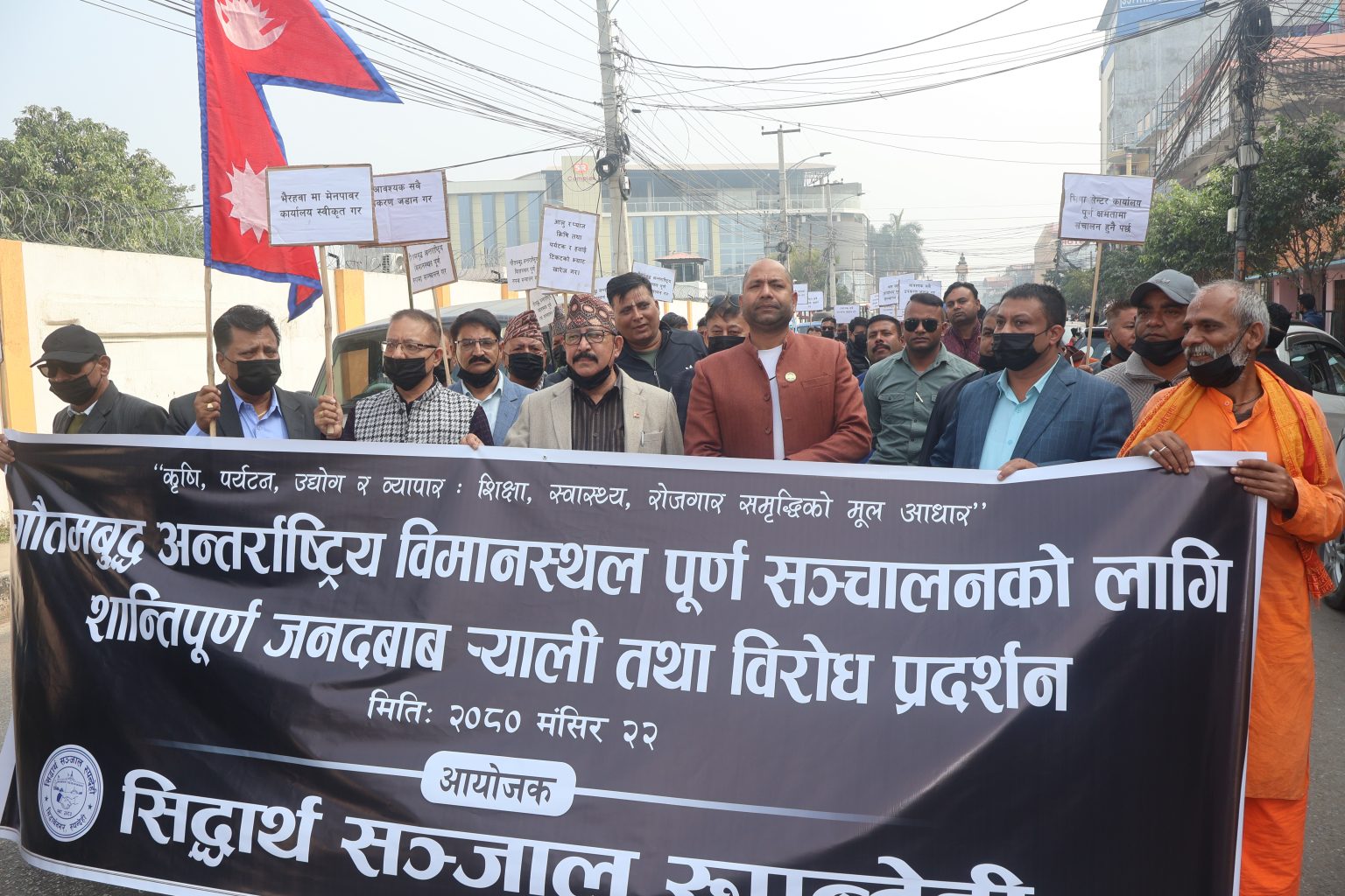 बिरोध र्यालीमा मन्त्री सहभागी: विमानस्थल पूर्ण रुपमा सञ्चालन गर्न माग