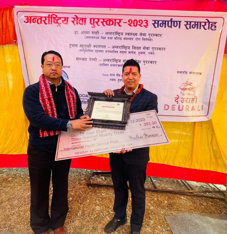 डा. अरुण शाहीलाई ५१ हजार राशीको अन्तर्राष्ट्रिय स्वास्थ्य सेवा पुरस्कार
