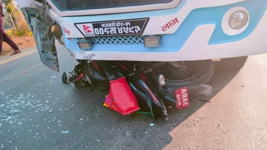 सिन्धुलीमा गुडिरहेको बसभित्र मोटरसाइकल पस्यो