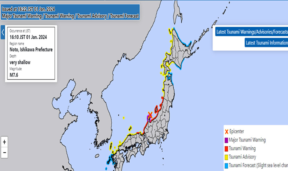 जापानमा ७.६ म्याग्नेच्युडको भूकम्प, सुनामीको चेतावनी